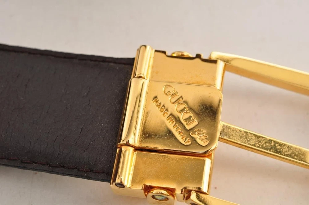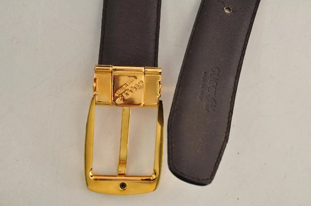 $ 113.1GUCCI buckle belt Dark Brown Leather Authentic Made in Italy Men's Used hardware