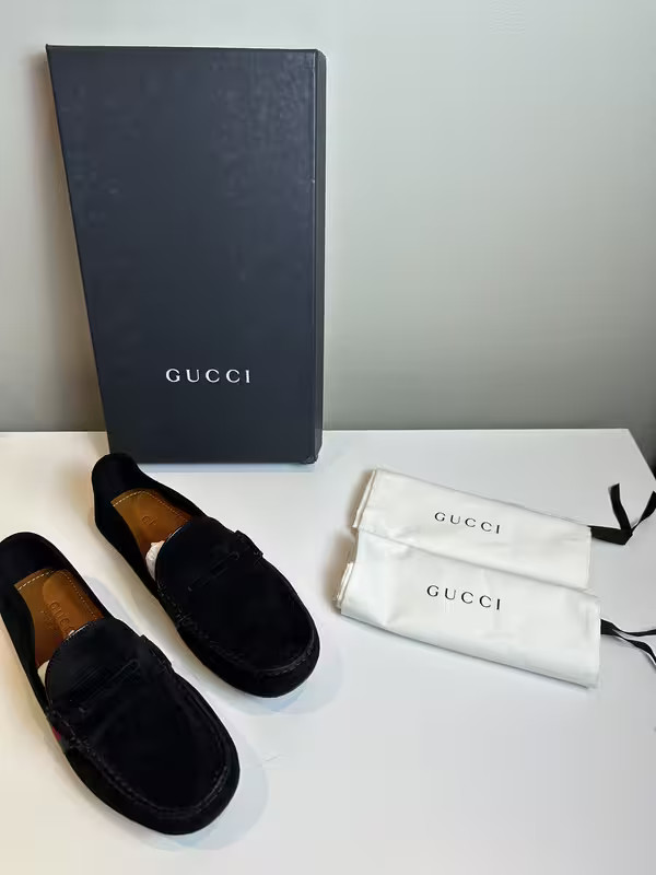 Style: Loafer EU Shoe Size: 41 Upper Material: Suede Country/Region of Manufacture: Italy Type: Casual Brand: Gucci Color: Black Department: Men UK Shoe Size: 7 US Shoe Size: 8