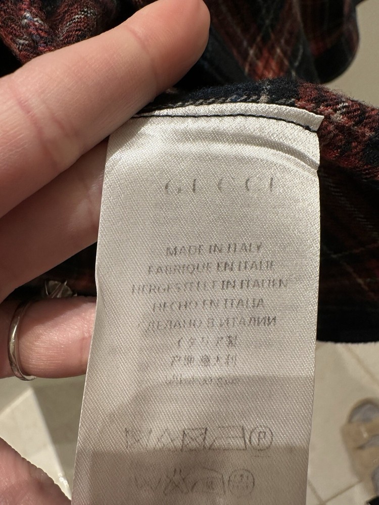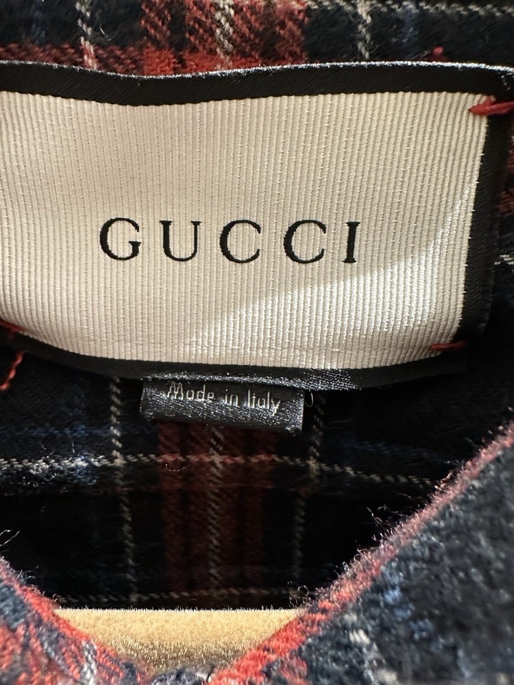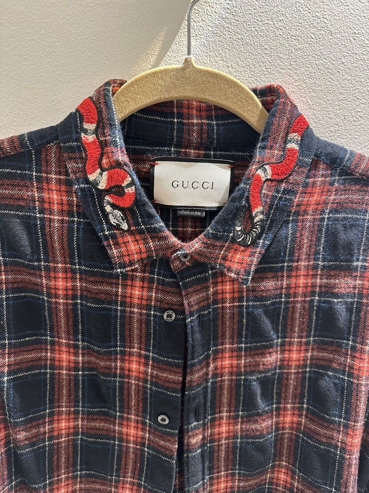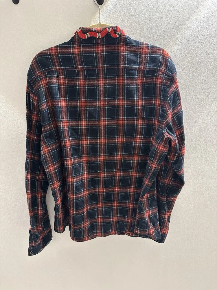 GUCCI Flannel Button Up Shirt - Plaid Embroidered Snake Pattern