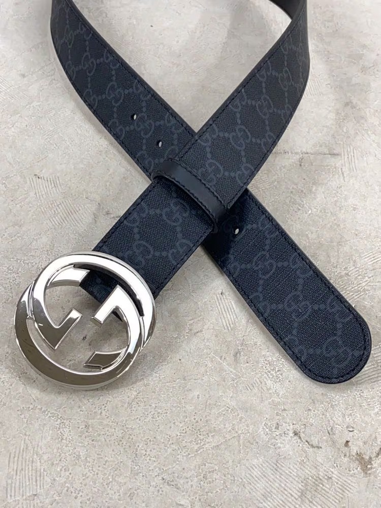 GUCCI GG Marmont Black Leather Belt for Men DJ20T Solid Color