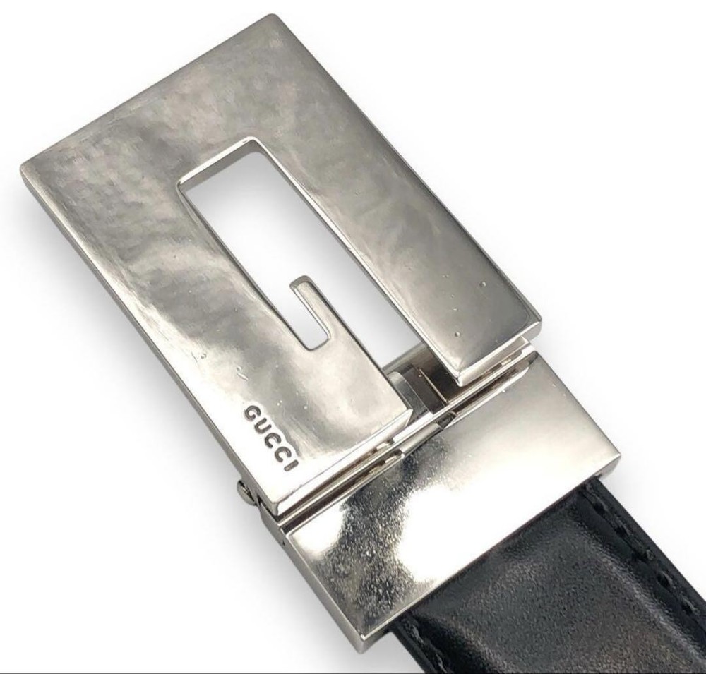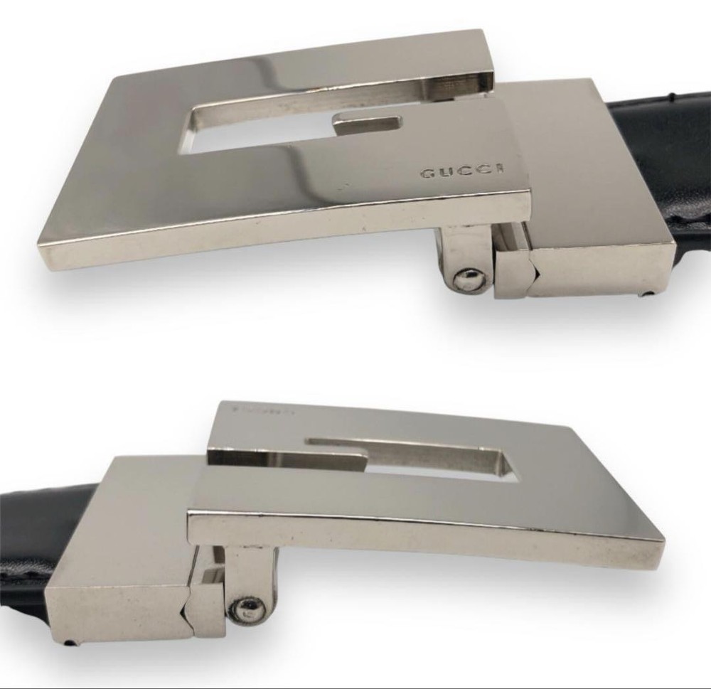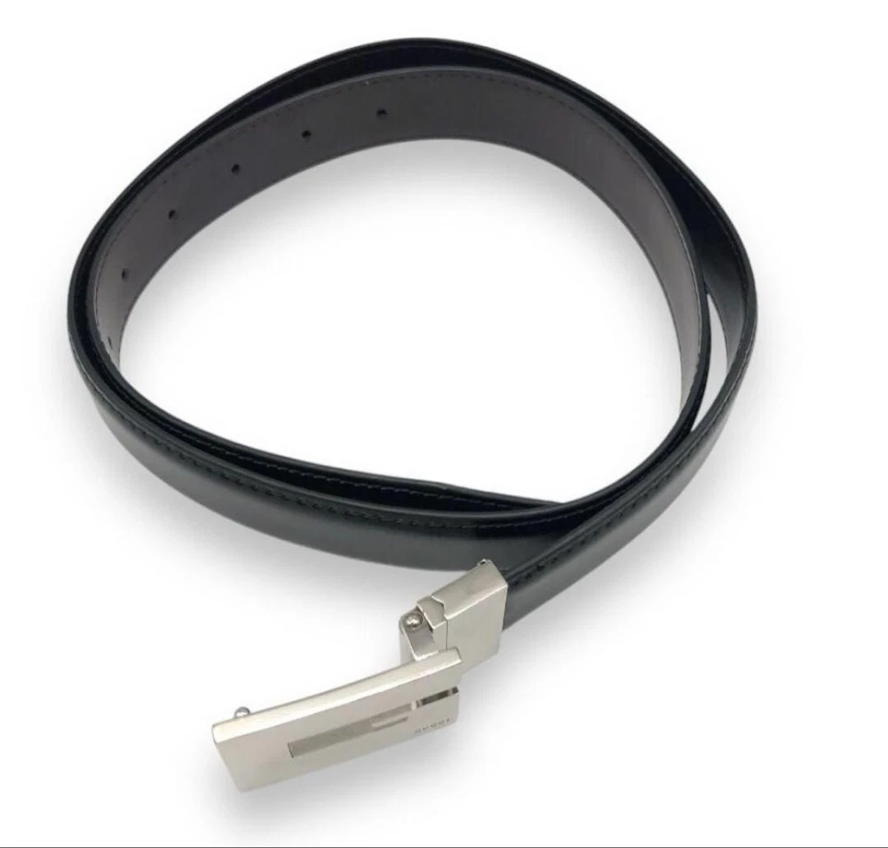 $ 114.45GUCCI authentic black leather belt with silver square buckle made in Italy pre-owned