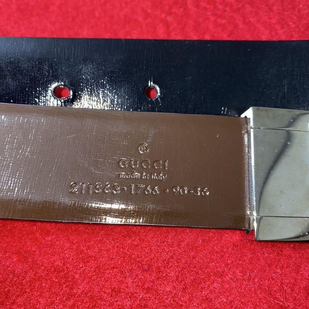 $ 103.6GUCCI wood square buckle belt Logo Leather Black Authentic Made in Italy Used