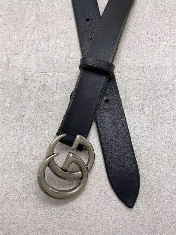 $ 265.75GUCCI GG Marmont Leather Belt for Women Black All-Over Print 406831 U4DA