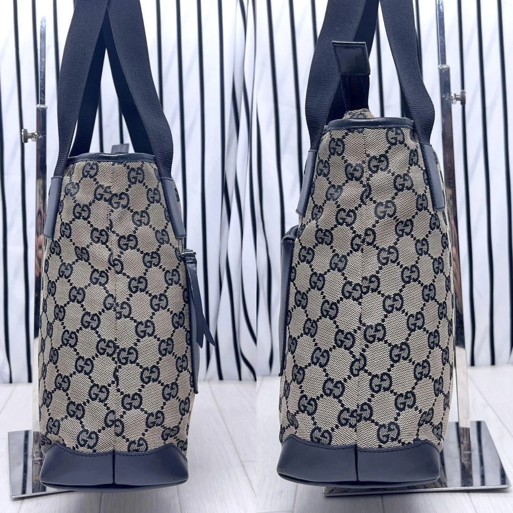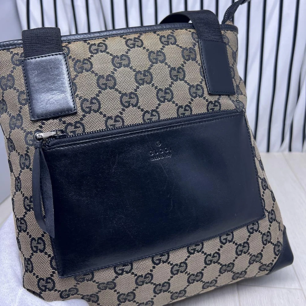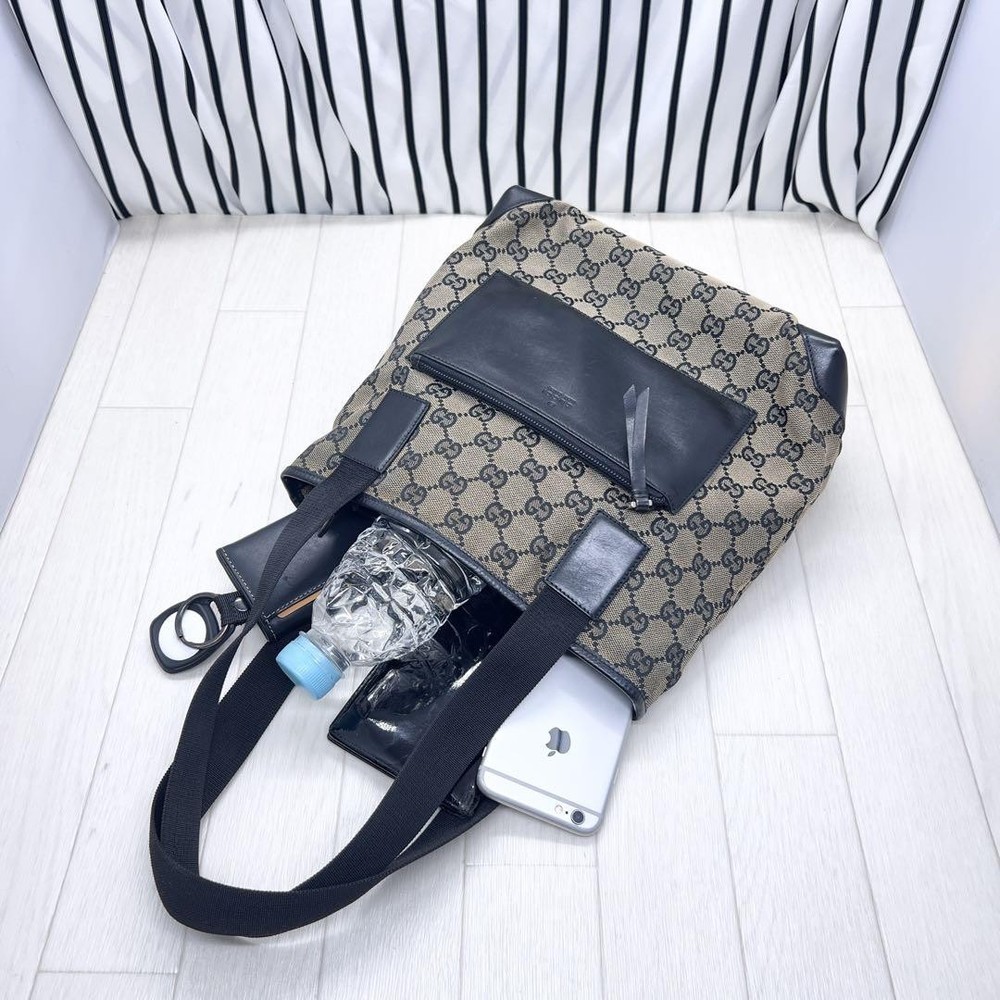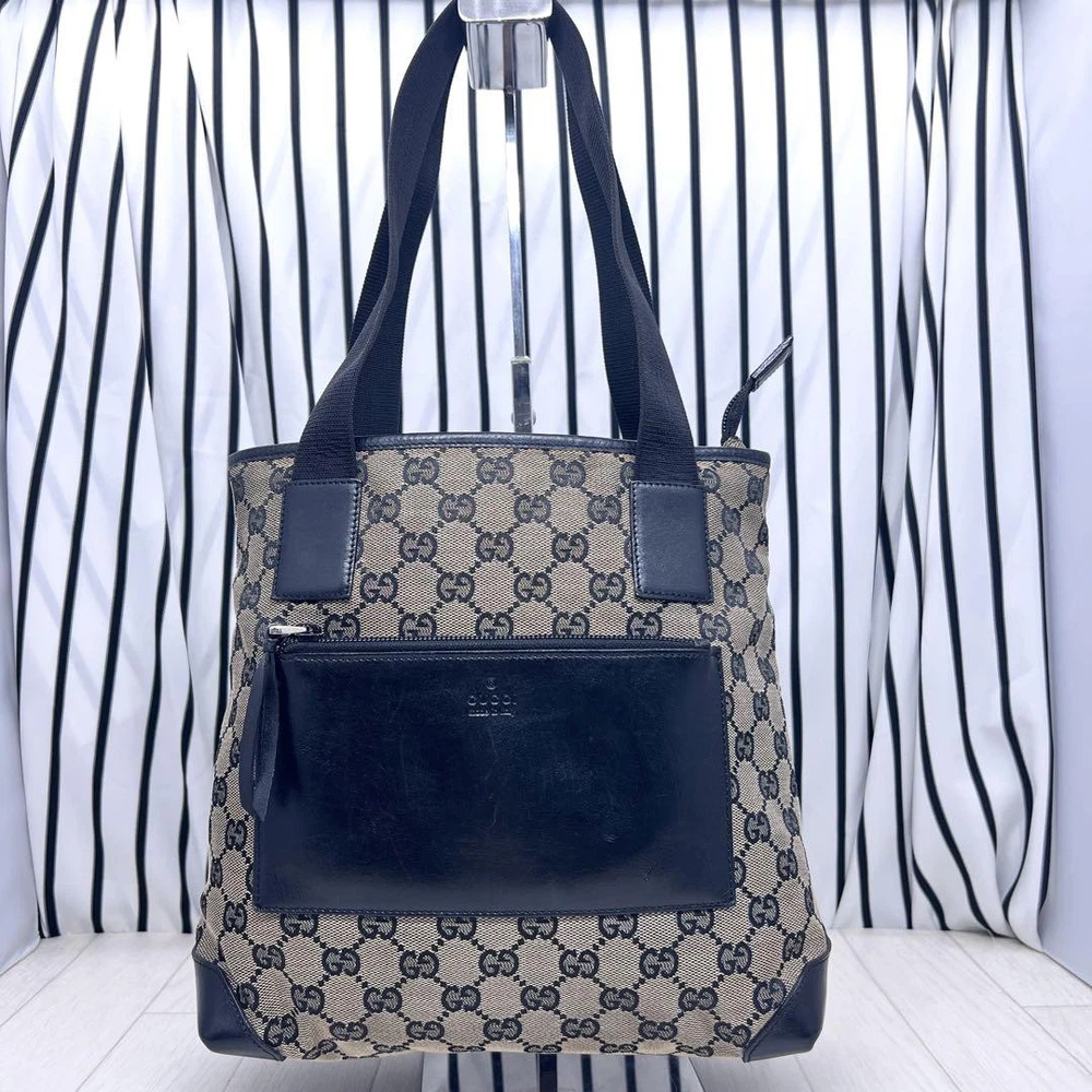 1. This GUCCI GG tote is a stylish and practical choice! The black canvas is classic and versatile, perfect for everyday use. While there’s minor dirt and a small skipped thread, the bag’s overall condition is great. Shipping from Japan was fast, and the seller was super responsive. Love the spacious design—fits all my essentials comfortably. Highly recommend for a chic, durable tote!