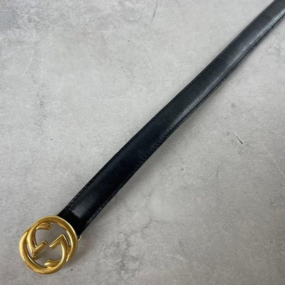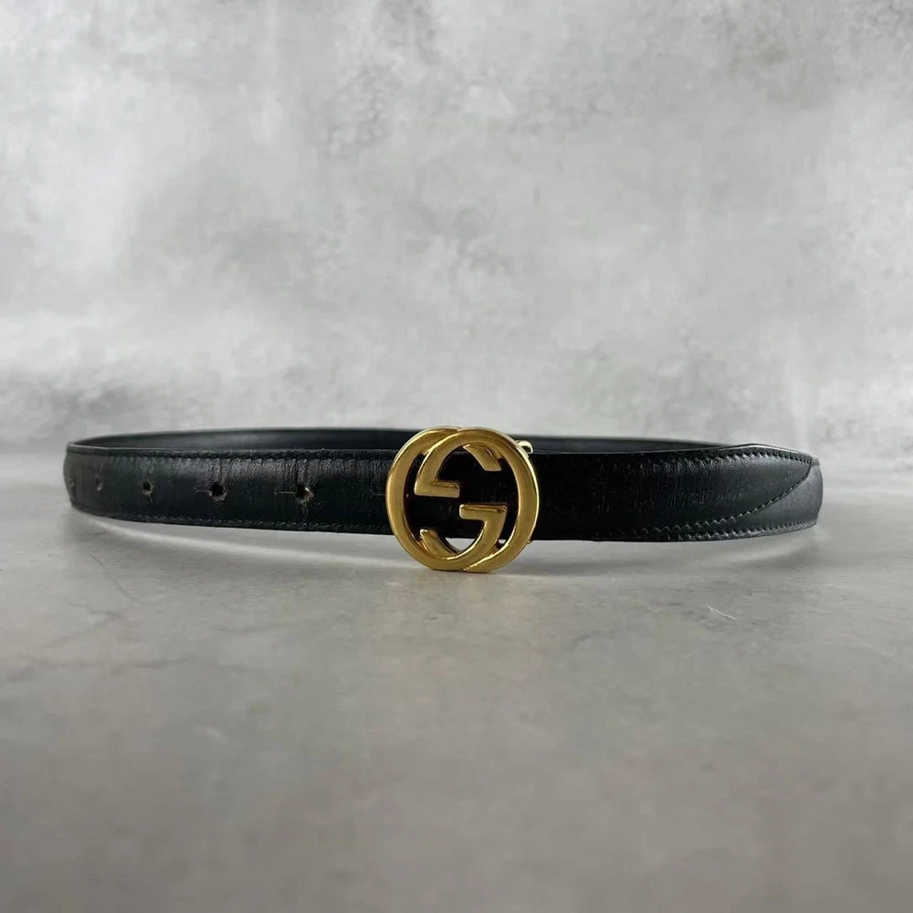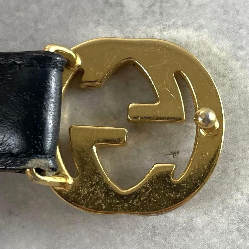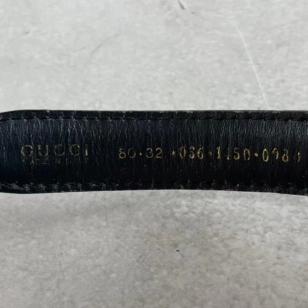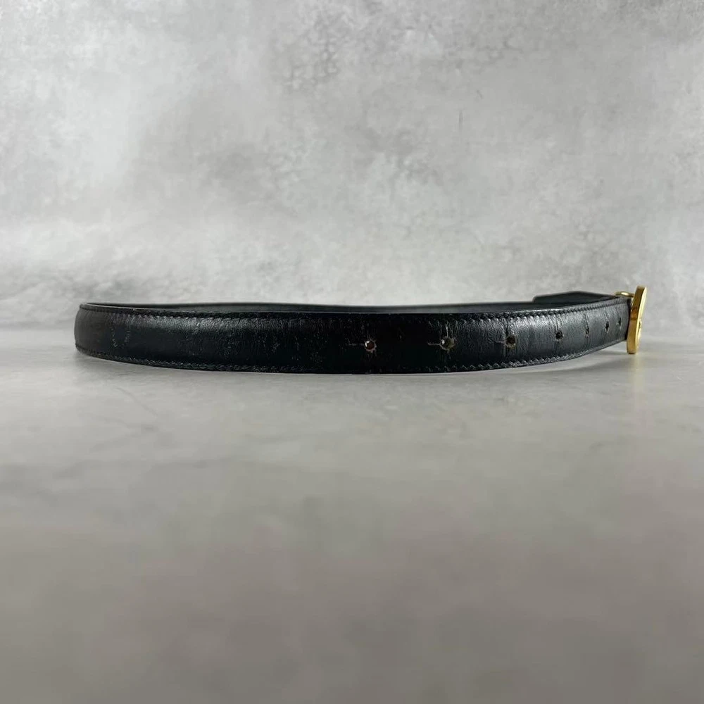 $ 63.29GUCCI GG Logo Black Gold Leather Belt with Buckle Authentic Made in Italy