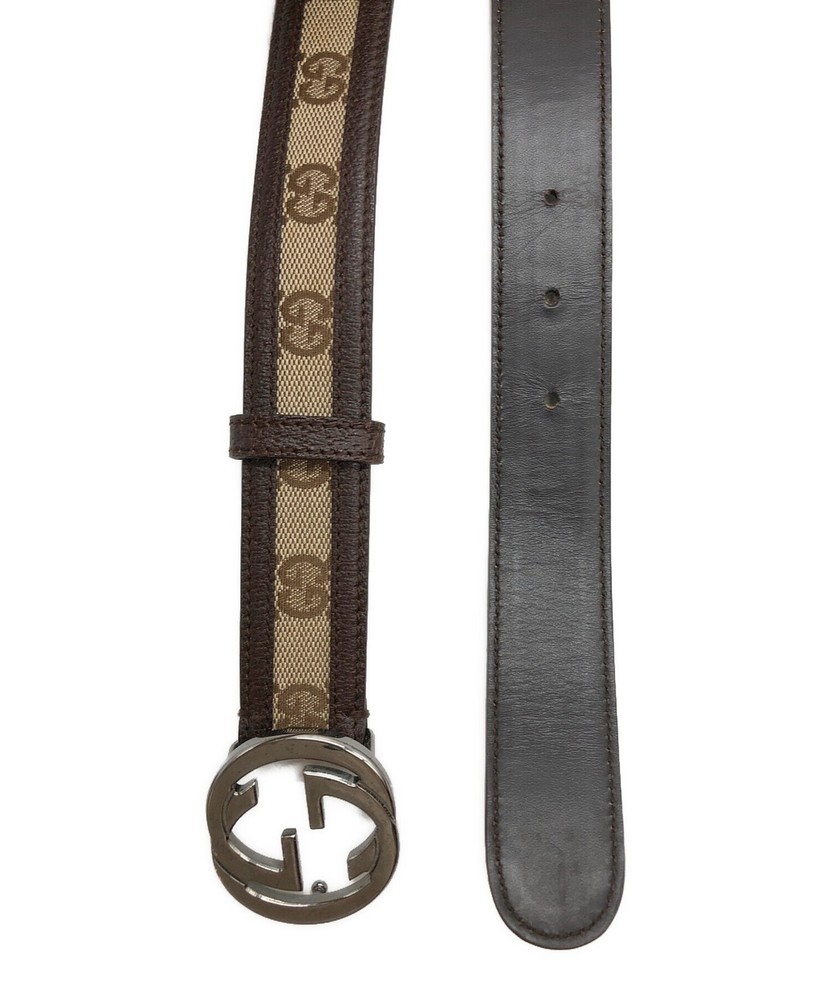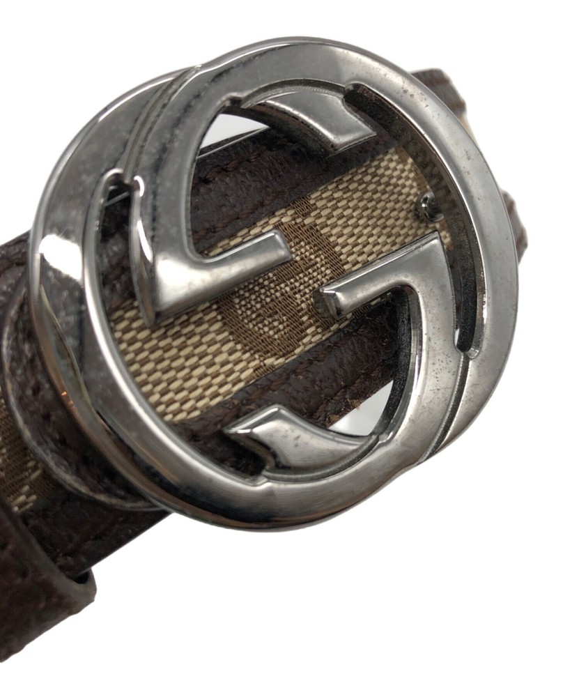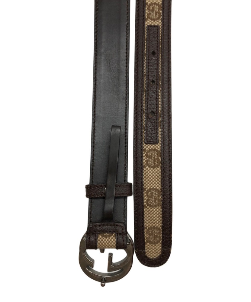 GUCCI GG Logo Belt in Brown Canvas and Leather with Authentic Italian Hardware