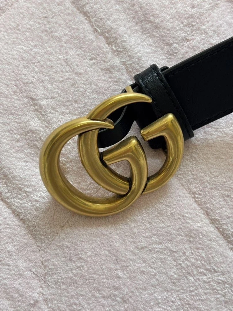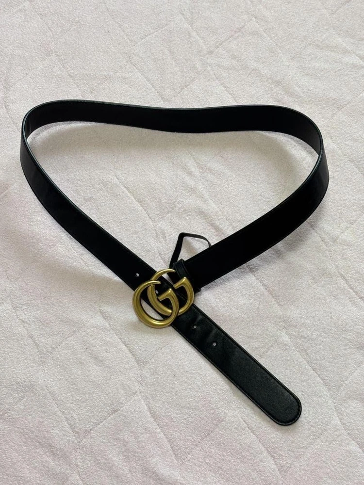 GUCCI GG Marmont Black Leather Belt with Buckle Authentic Made in Italy
