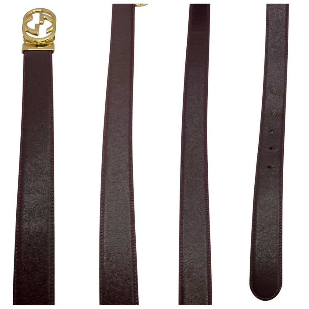 This GUCCI belt is absolutely stunning—the rich purple leather with gold GG hardware makes a bold yet elegant statement. The craftsmanship is impeccable, and it’s in fantastic condition with no visible wear. The sizing is versatile, fitting waists from 33.86 to 38.98 inches, and the Italian leather feels luxurious. Perfect for elevating any outfit! Just note that accessories like the box may not be included, so reach out beforehand if that’s important. Highly recommend!