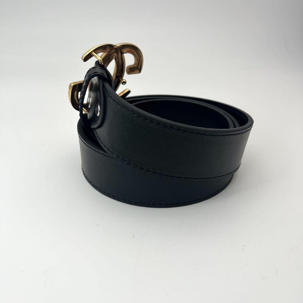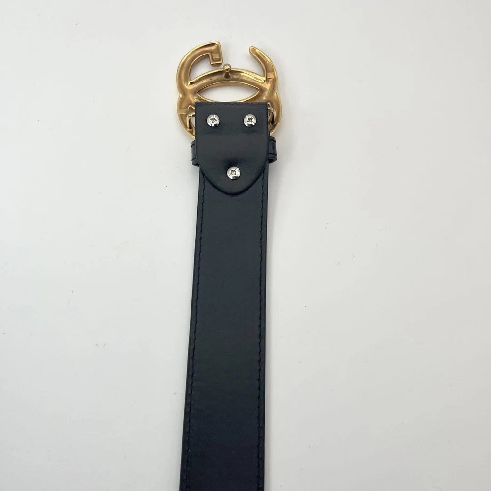$ 105.08GUCCI GG Interlocking Buckle Belt in Black Gold Leather Authentic Made in Italy