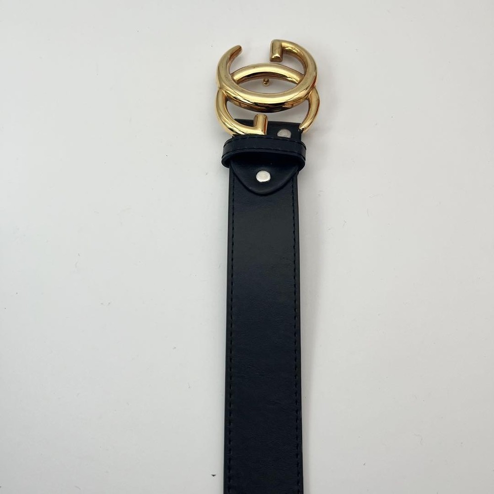 $ 83.48GUCCI buckle belt G Logo hardware Gold Authentic Made in Italy Leather Black