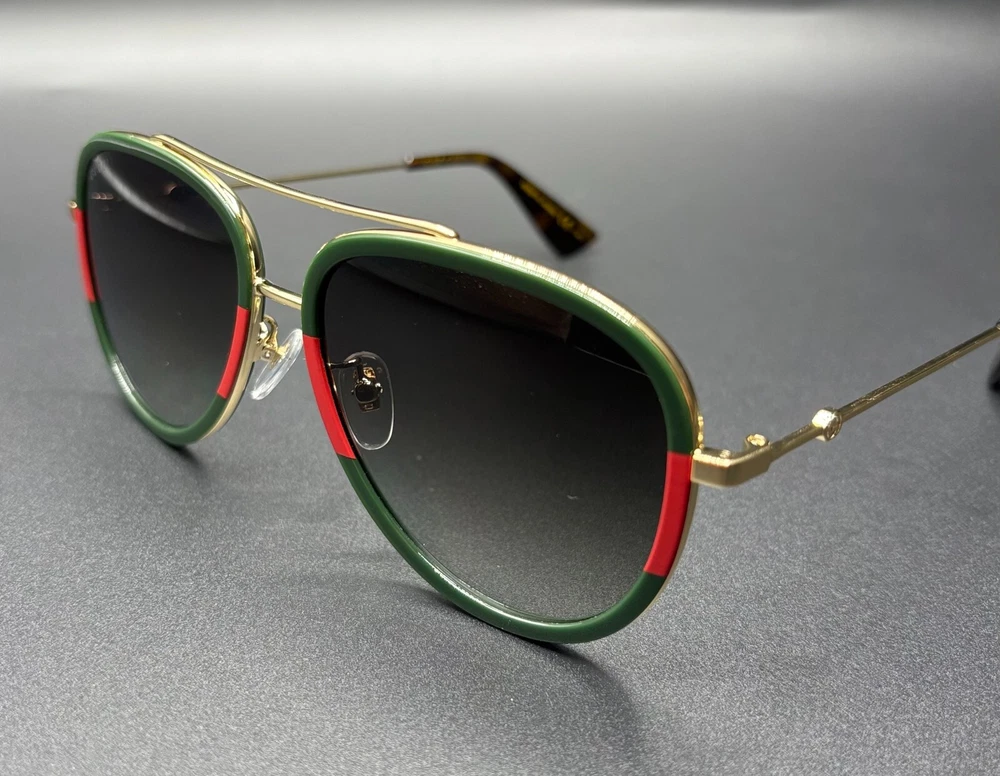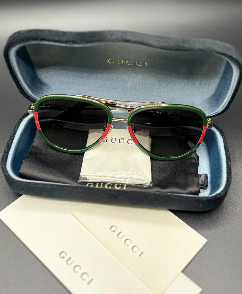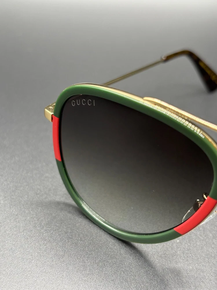 Free shipping from Miami, Florida! Delivery time 1-4 business days. Item Details: • Brand: Gucci • Model: GG0062S 003 • Gender: Unisex • Frame Color: Green/Red (Signature Gucci Web) • Lens Color: Grey Gradient • Frame Shape: Aviator • Frame Material: Metal • Lens Material: CR-39 • Lens Protection: 100% UV (UVA/UVB) • Lens Width: 57 mm • Bridge Width: 17 mm • Temple Length: 140 mm • Made in: Japan Features: • Authentic Gucci designer sunglasses • High-quality Japanese craftsmanship • Lightweight metal frame with classic double bridge • Adjustable nose pads for comfort and secure fit • Iconic green/red Gucci stripe on temples • Discreet Gucci logo on lens and temple • Suitable for both men and women What’s Included: • Original Gucci protective case • Microfiber cleaning cloth Condition: Brand new.