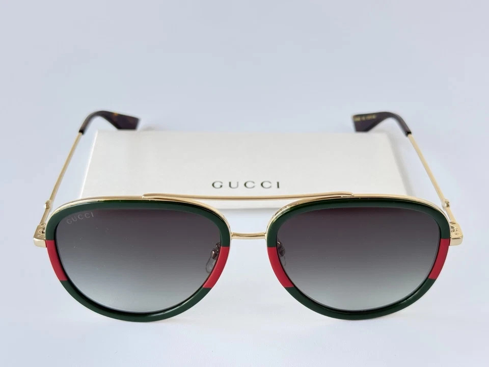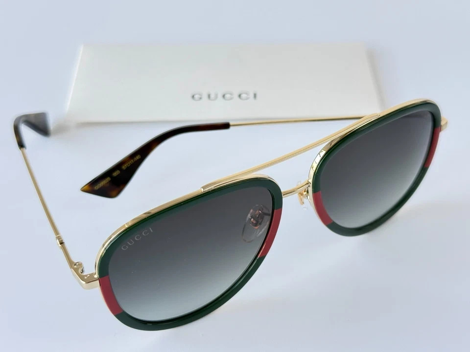 GUCCI GG0062S 003 Green/Red Aviator Unisex Sunglasses Light Grey Lens 57mm