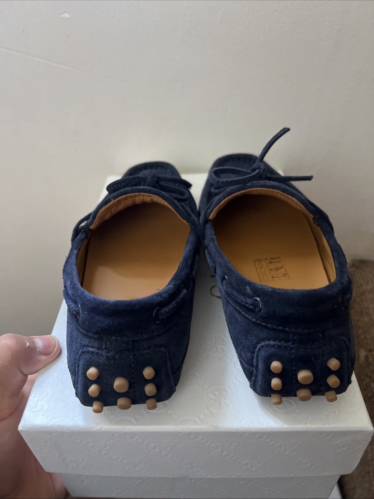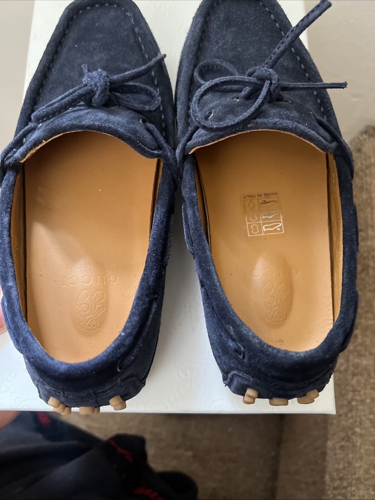 Style: Loafer Color: Navy Blue Insole Material: Leather Theme: Designer Handmade: No Upper Material: Suede Personalize: No Performance/Activity: Beach, Walking EU Shoe Size: 30 Vintage: No Accents: Bow Brand: Gucci Toe Shape: Almond Toe Occasion: Casual, Formal, Travel, Wedding Shoe Shaft Style: Low Top Country/Region of Manufacture: Italy Model: Gucci kid's Loafers 371804 Closure: Slip On Type: Loafers Cleat Type: Rubber Lining Material: Leather Department: Boys Outsole Material: Suede Season: Fall, Spring, Summer, Winter Fabric Type: Suede Features: Comfort Customized: No Product Line: Gucci Kids Shoe Width: 2"4 US Shoe Size: 12 Character: Casual