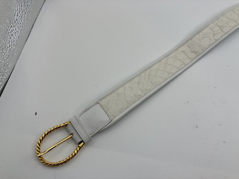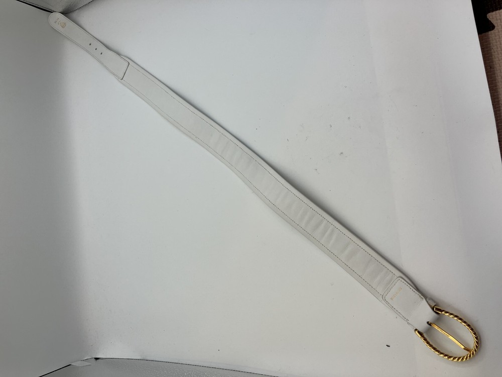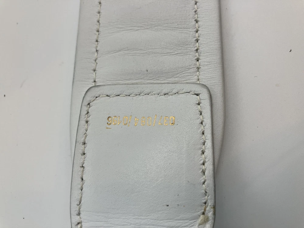 GUCCI Old Gucci Belt Length 94cm(37.01 inch) Width 4.6cm(1.81 inch) White & Gold Free Shipping Description Item No 247662518-20241220 Brand GUCCI Item belt Gender unisex Material Genuine Leather Notation Size M Accessory None Production features GUCCI Old Gucci Belt Color: White & Gold size Total length: 94cm(37.01 inch) Width: 4.6cm(1.81inch) Length from buckle end to outermost hole: 83cm(32.68 inch) Length from buckle end to inner hole: 78cm (30.71 inch) There are small scratches and scuffs, but it is clean with no noticeable scratches or stains. *This product is 100% authentic and has been authenticated, purchased from a brand auction exclusively for major dealers. *If there is any problem with the product, please feel free to contact us. *Please feel free to contact us with any questions or concerns you may have. We will do our best to assist you. *As this item is also listed on other sites, it may be cancelled without notice. [Second-hand goods dealer license] No. 431360059517 Saitama Prefectural Public Safety Commission Condition Details There are some minor scratches and scuffs, but there are no noticeable marks or stains, and it is clean. ? This is a USED/VINTAGE item. ? Sold as-is. No returns accepted unless the item is significantly not as described. ? Please check all photos and description carefully before purchasing. ? Customs duties and VAT are the responsibility of the buyer.