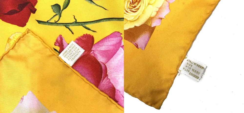 GUCCI model: Rose Motif material: 100% silk color: orange dimensions: 34" x 34" (86cm x 86cm) made in: italy vintage new old stock, gift box included. no signs of use gbstock# 0000086
