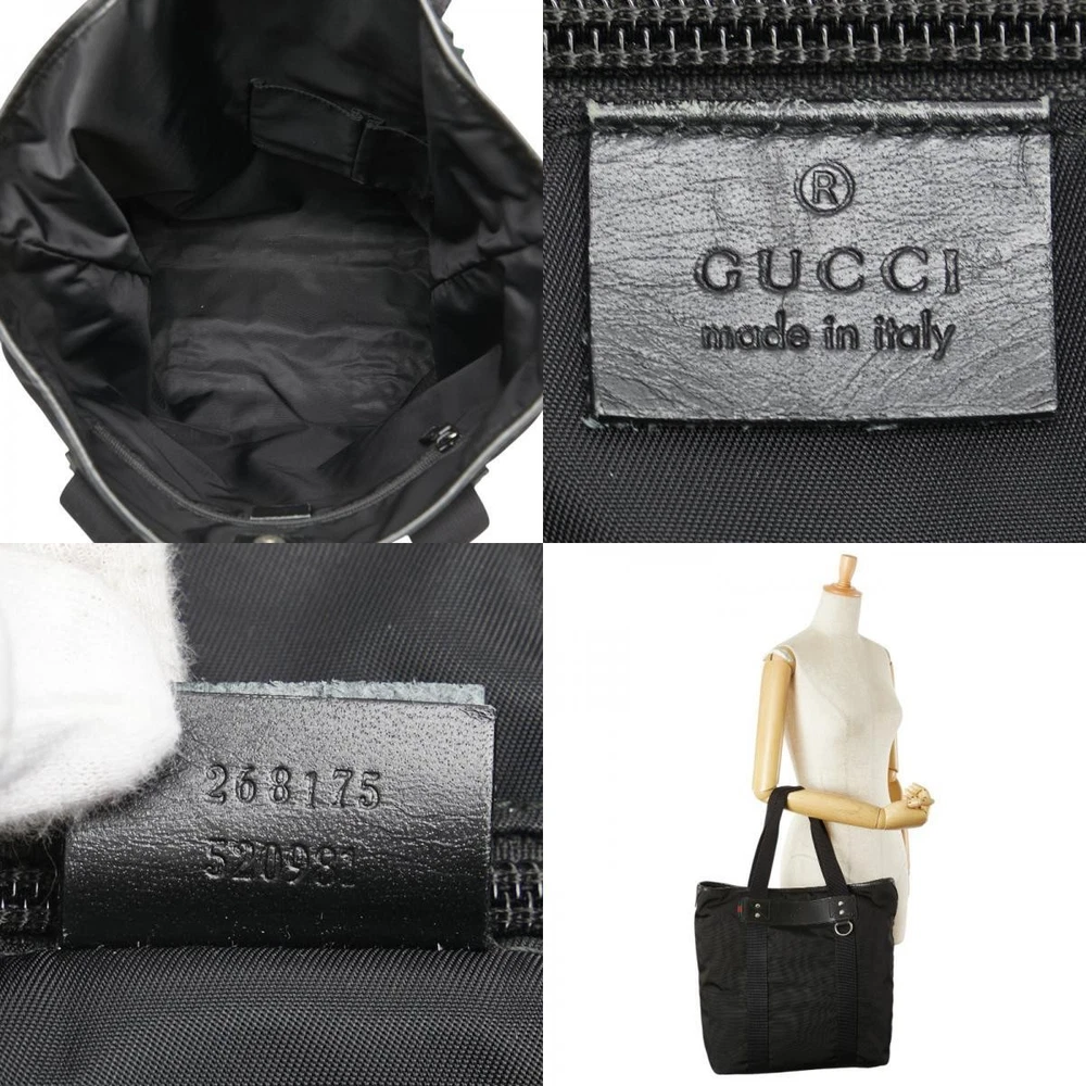 GUCCI Parana Web Tote Bag Black Nylon Leather Loop 268175 858318