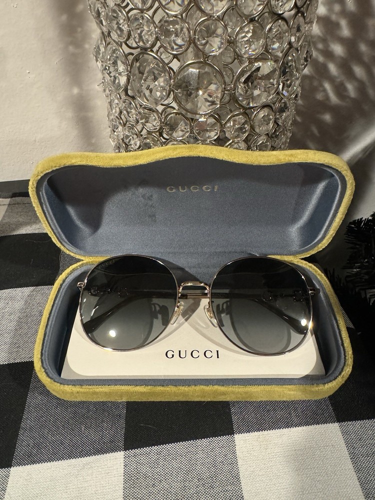 These Gucci gold round sunglasses are absolutely stunning! The sleek design and high-quality finish make them a perfect luxury accessory. They arrived brand new with the authentication card, just as described. Super lightweight and comfortable—definitely worth it!