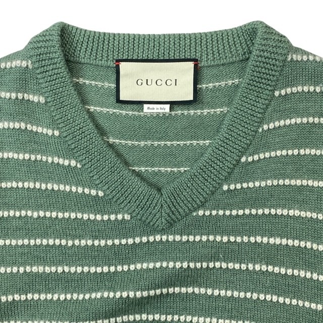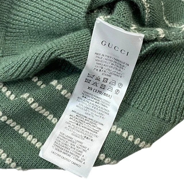 GUCCI Knit Sweater Long Sleeve V-Neck Striped Alpaca Wool Green Listed Size XS Description Good condition USED in Japan. Discounts are available for bulk purchases. They are 100% authentic, purchased in the Japanese appraised market. Shipping Please let me know which you prefer Your item will be shipped within 10 business days after payment is received. International buyer is responsible for all custom and duty fees if applicable. Highest bidder must contact me within 3 days of auction close, and must pay within one weeks. Hope you will enjoy bidding this item. Thank you very much!