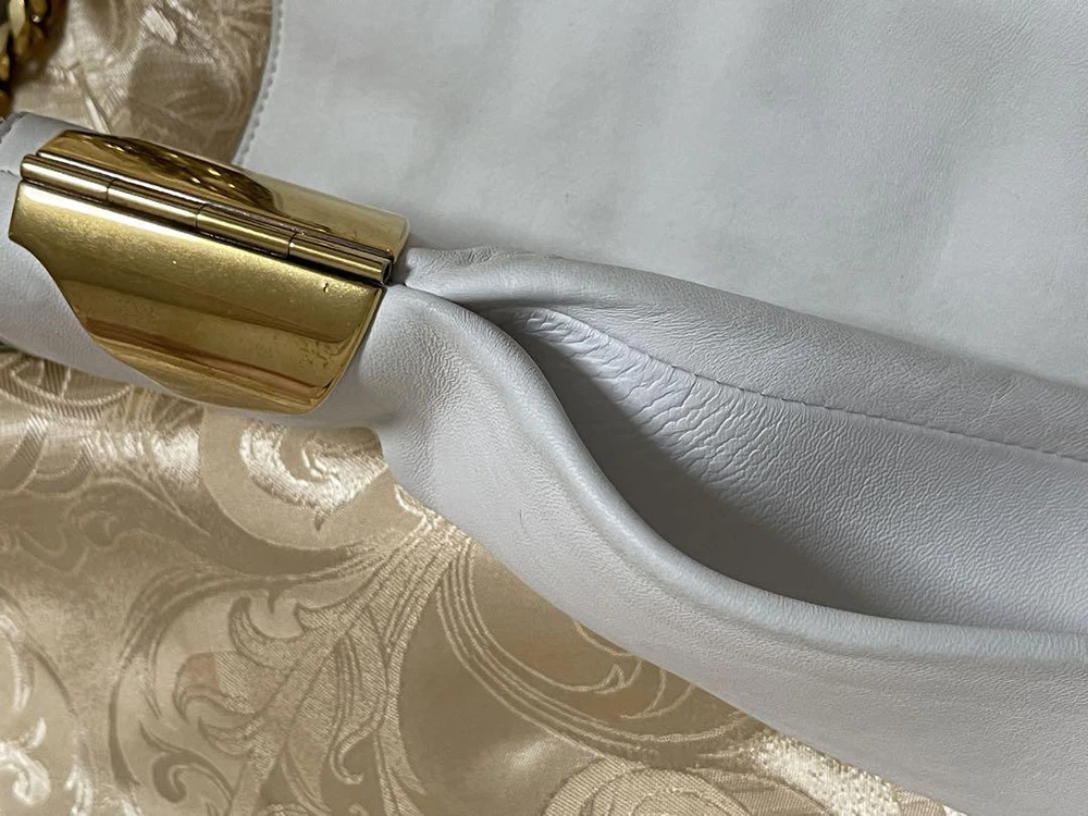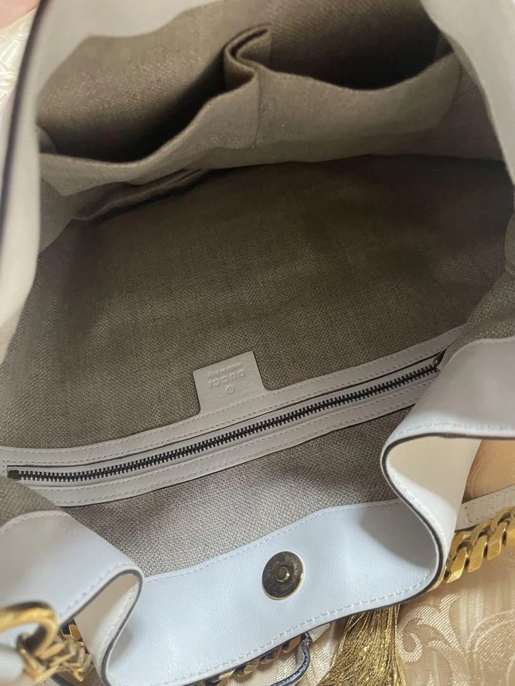 Absolutely love this vintage GUCCI shoulder bag! The white canvas has a cool, worn-in look with some natural distressing that adds character. Spacious enough for daily essentials but still sleek. Shipped fast from Japan, packed securely with a dust bag included. Seller was super responsive—great experience overall! A unique piece with authentic charm.