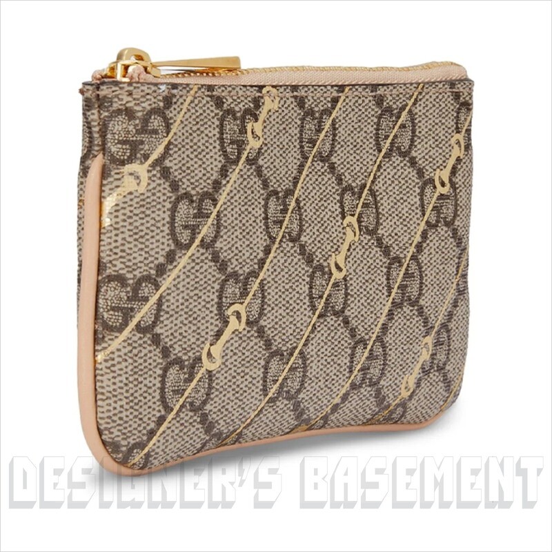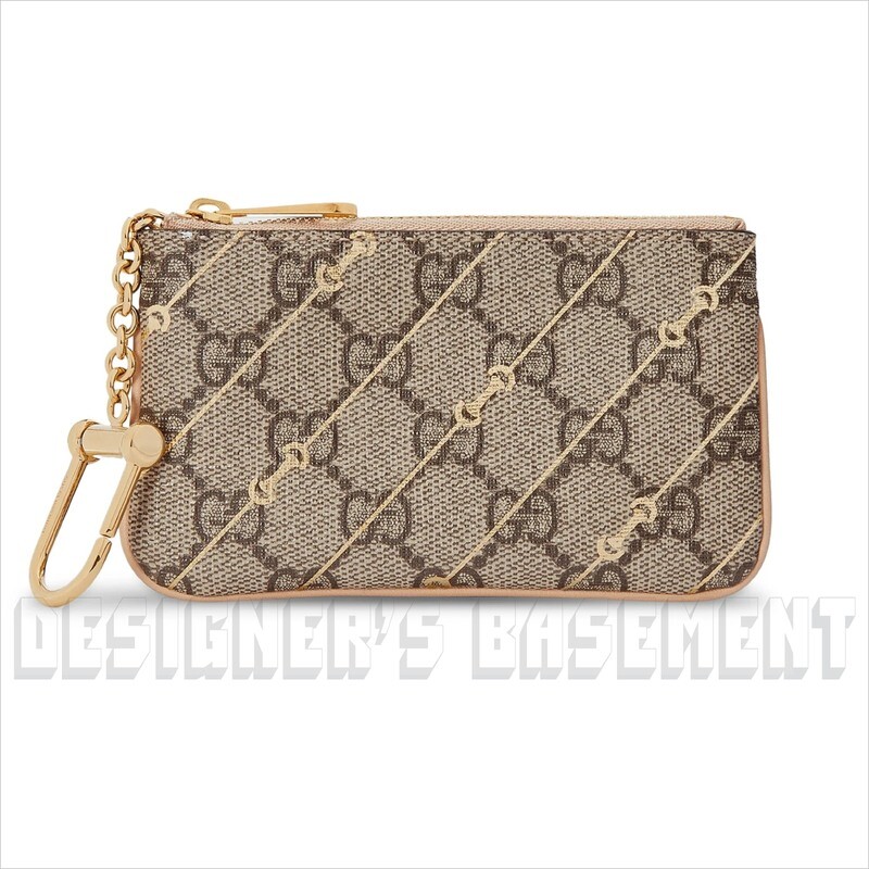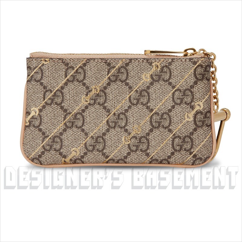 GUCCI beige Leather gold Horsebit print GG Supreme Canvas POUCH Key Ring wallet NIB Authentic $495! 100% Authentic GUCCI beige Leather gold Horsebit print GG Supreme Canvas Pouch Case with Key Ring chain wallet RP: $495 Style # 774344 FACYR 8548 Made in Italy Brown GG Supreme Canvas with gold Horsebit print trimmed with beige calfskin leather Length: 5 in Height: 3 in Gold-tone zipper on the top Gold-tone metal chain with toggle clasp attached to the inside Gucci logo & number embossed on the leather inside Comes in Gucci box, dust bag and with authenticity/care cards. Brand new with tags . Originally sold for $495 ! You'll love it!