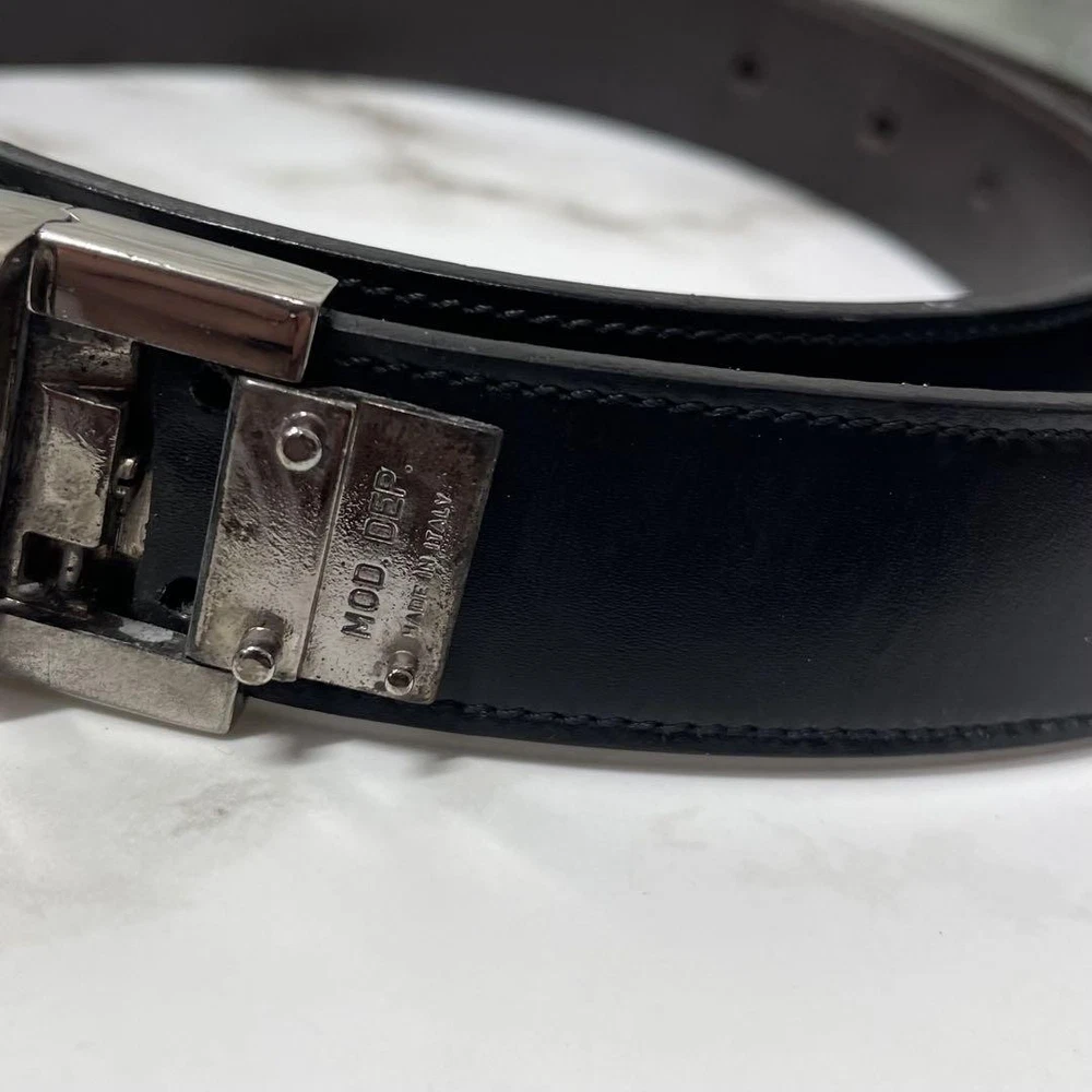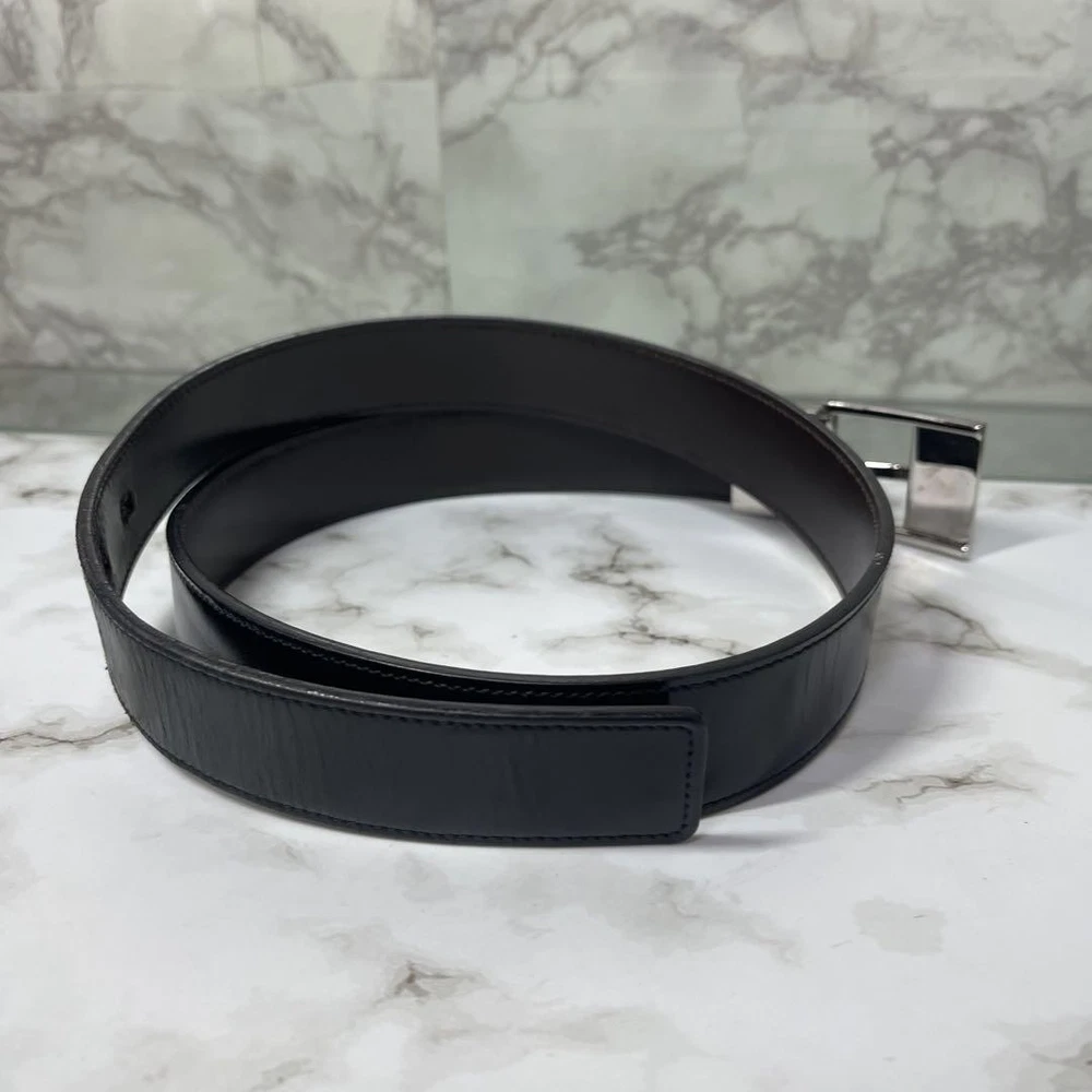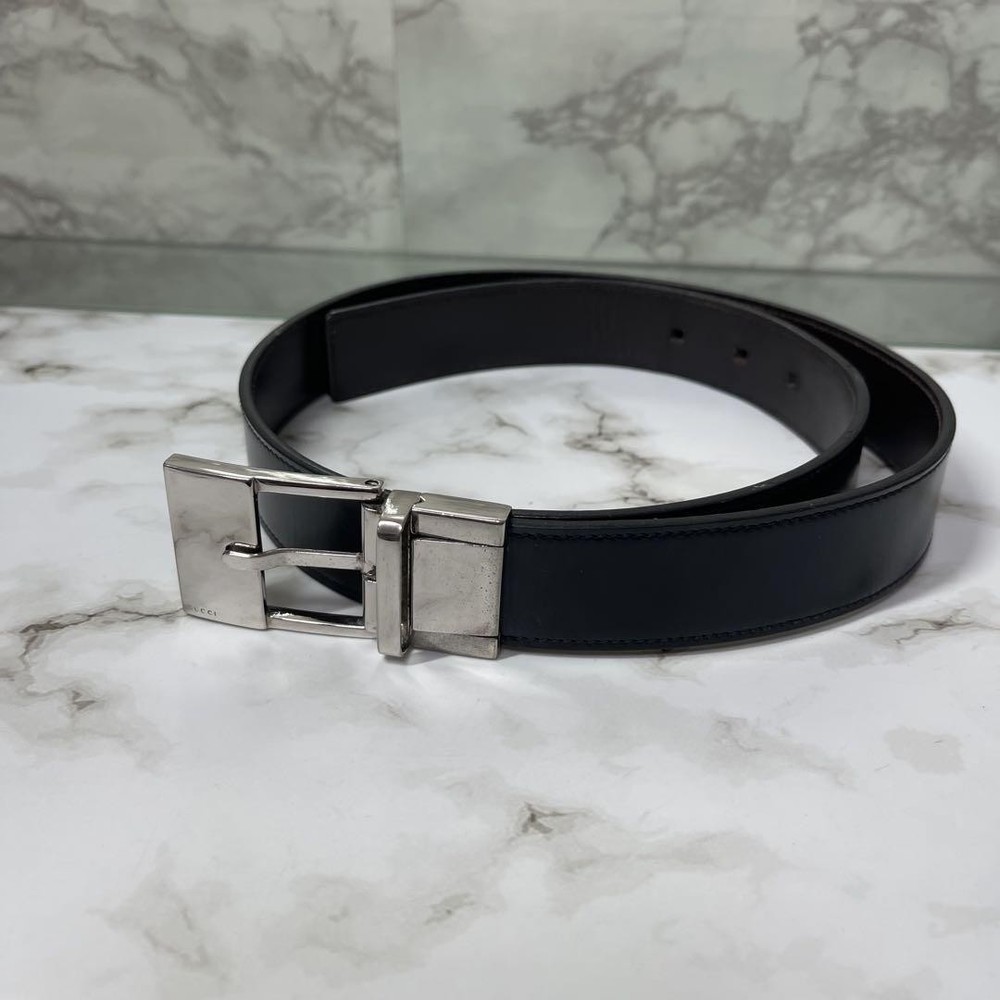 $ 8.4GUCCI buckle belt Black Silver Leather Authentic Made in Italy Men's Used