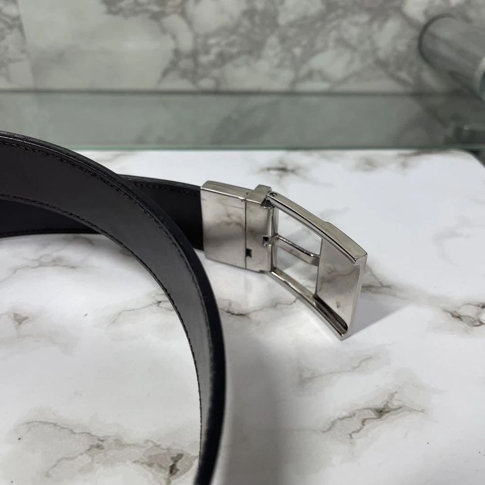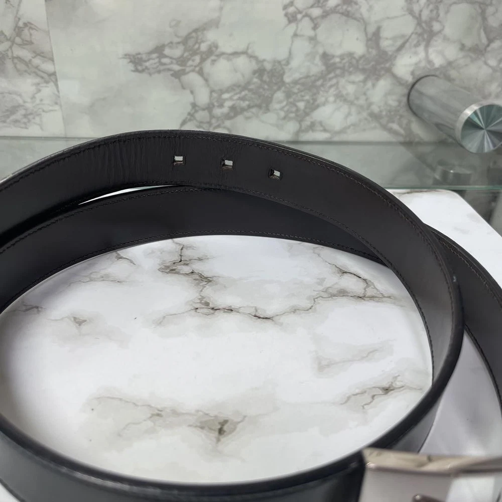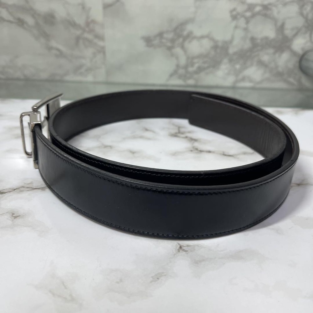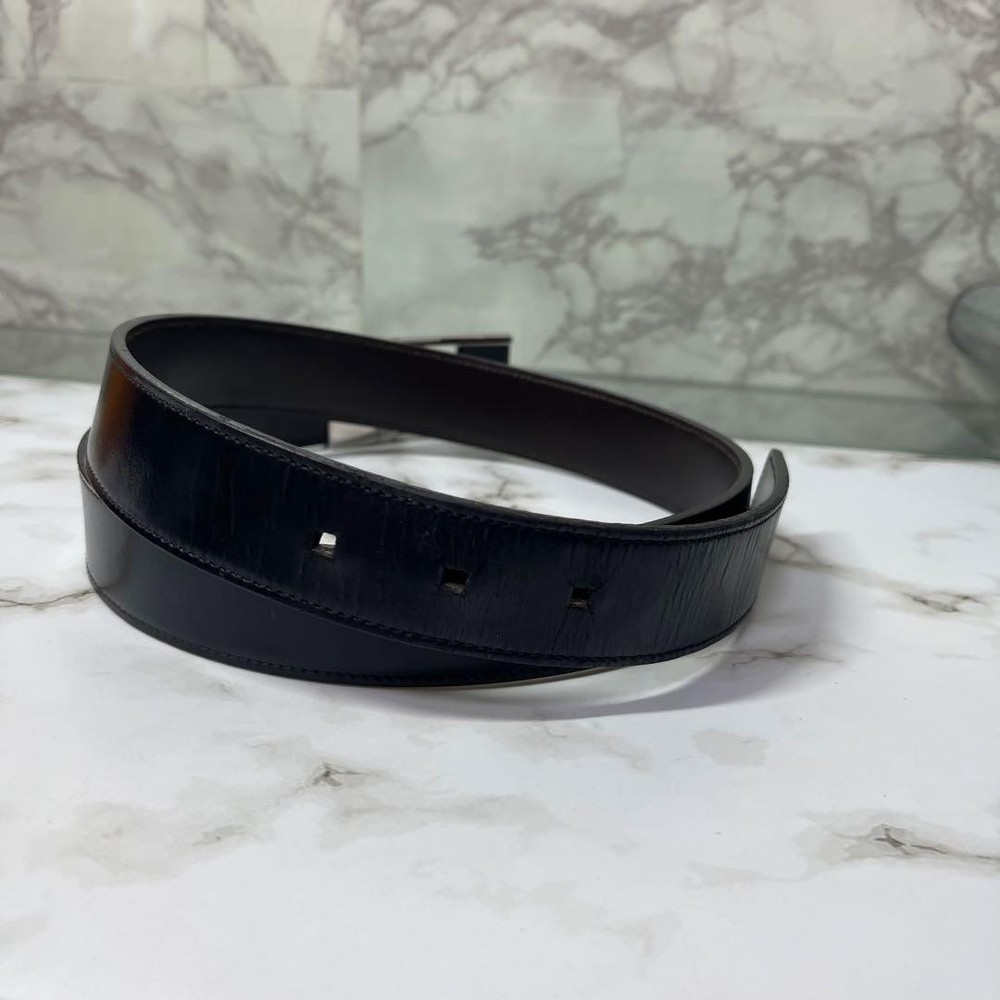 $ 8.4GUCCI buckle belt Black Silver Leather Authentic Made in Italy Men's Used