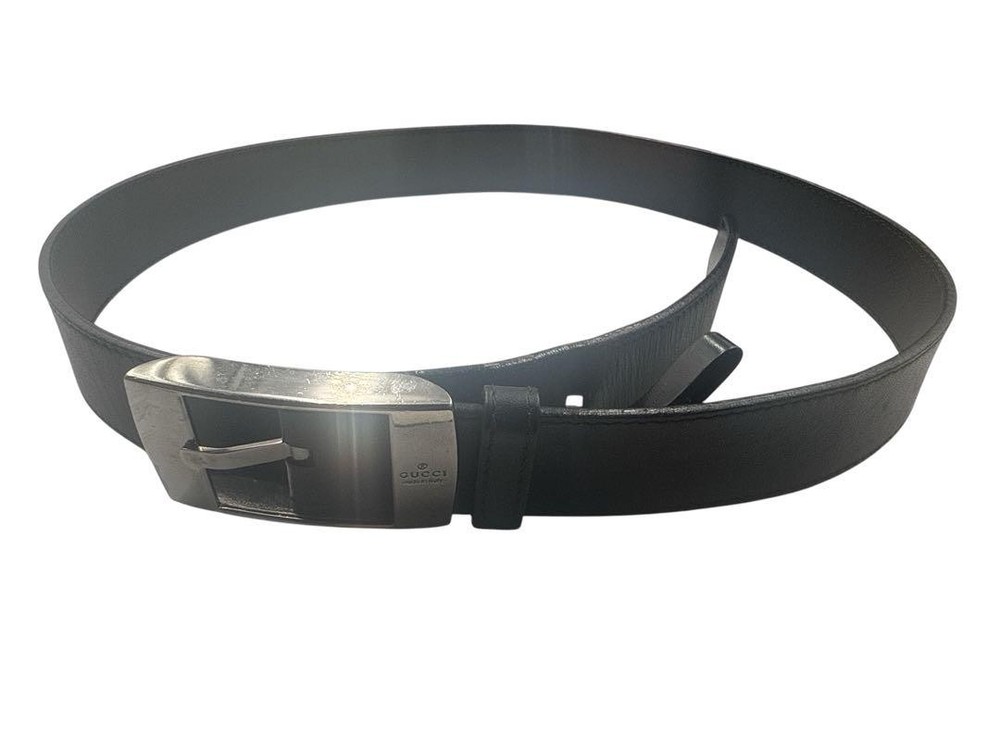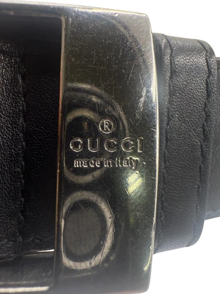 $ 86.5GUCCI buckle belt Logo Silver hardware Men's Black Leather Made in Italy Used