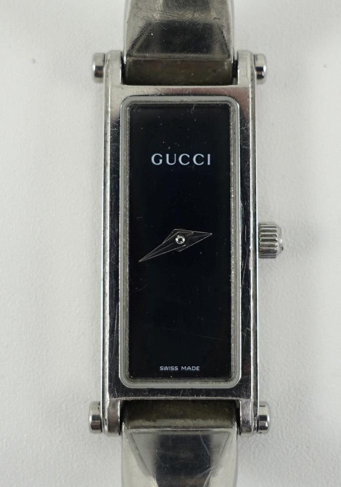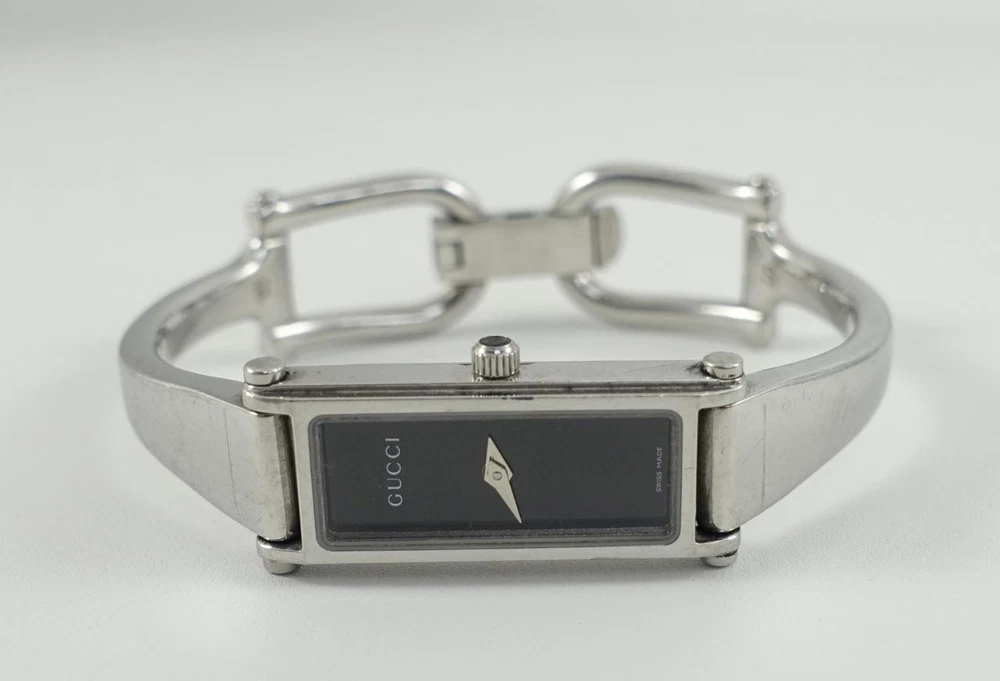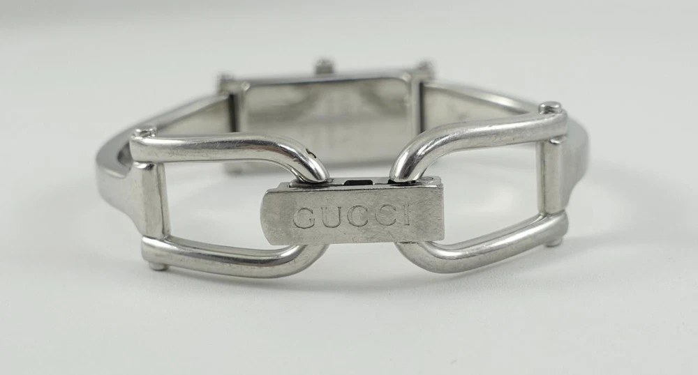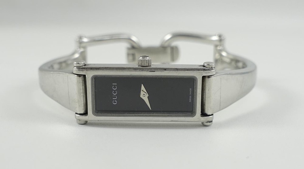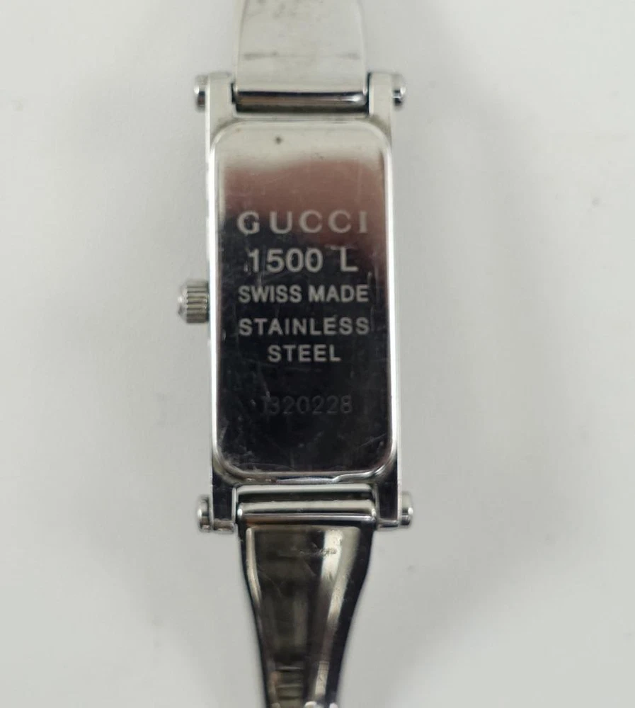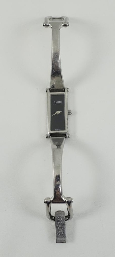 GUCCI women analog quartz stainless steel bangle watch with black dial. 1500L Fits a 5.5" wrist. In excellent pre-owned working condition. GUCCI women analog quartz stainless steel bangle watch with black dial. 1500L Fits a 5.5" wrist. In excellent pre-owned working condition. ABOUT US FAVORITE THIS OUR REVIEWS CONTACT US Images sell! Get Supersized Images & Free Image Hosting Attention Sellers - Get Templates Image Hosting, Scheduling at Auctiva.com. Track Page Views With Auctiva's Counter