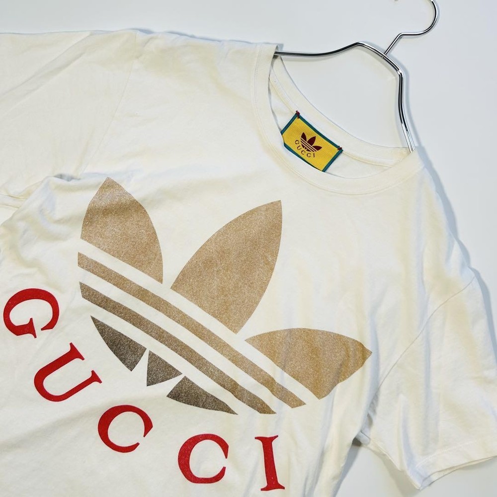 GUCCI Adidas T-shirt Cotton Collaboration White Gold Description Good condition USED in Japan. Discounts are available for bulk purchases. They are 100% authentic, purchased in the Japanese appraised market. Shipping Please let me know which you prefer Your item will be shipped within 10 business days after payment is received. International buyer is responsible for all custom and duty fees if applicable. Highest bidder must contact me within 3 days of auction close, and must pay within one weeks. Hope you will enjoy bidding this item. Thank you very much!