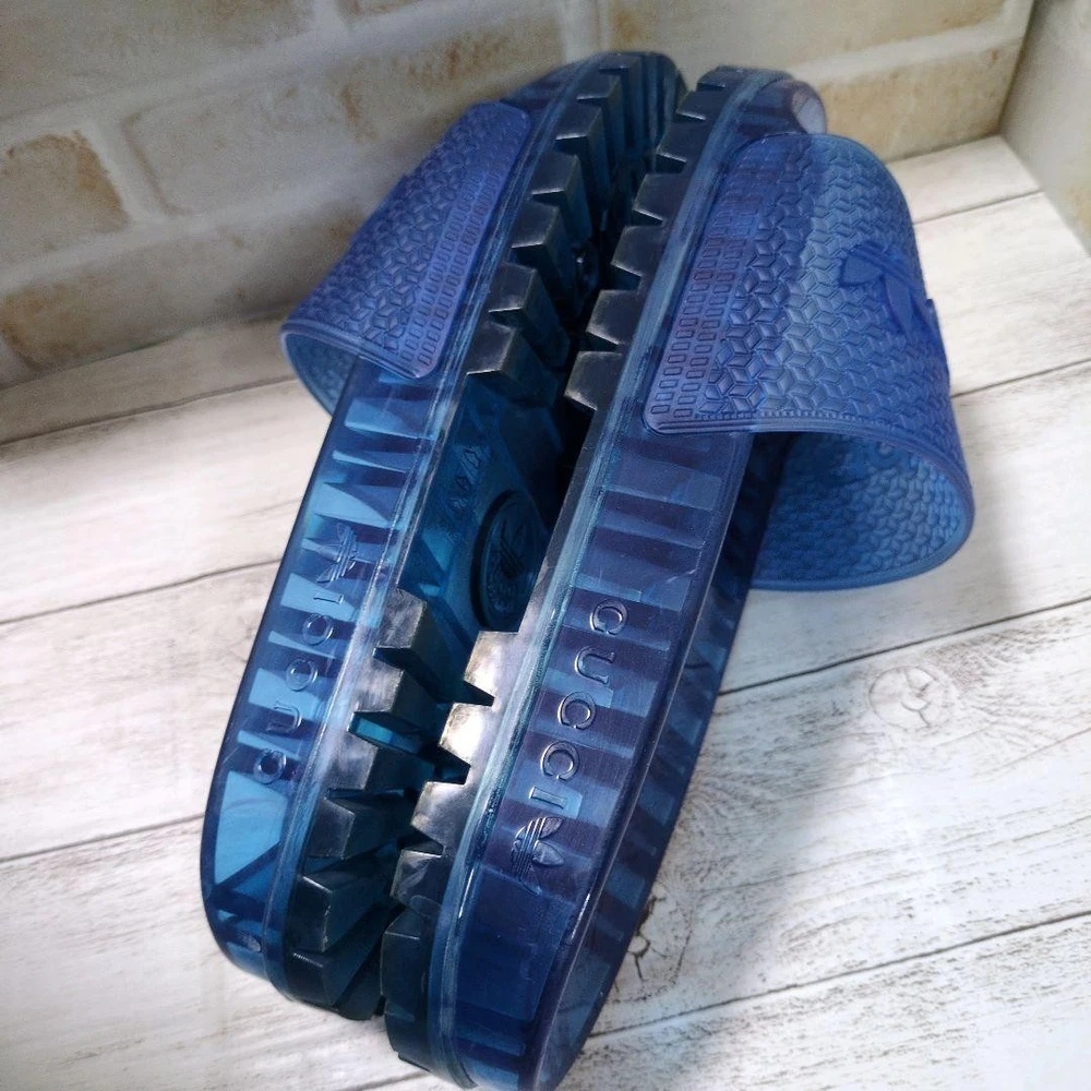 These Gucci x Adidas slides are a must-have for any sneakerhead! Even though they're pre-owned, they're in great condition and 100% authentic—straight from Japan's trusted market. Super comfy for showers or casual wear, and they ship fast. Perfect for adding a touch of luxury to your everyday look. Don’t miss out!