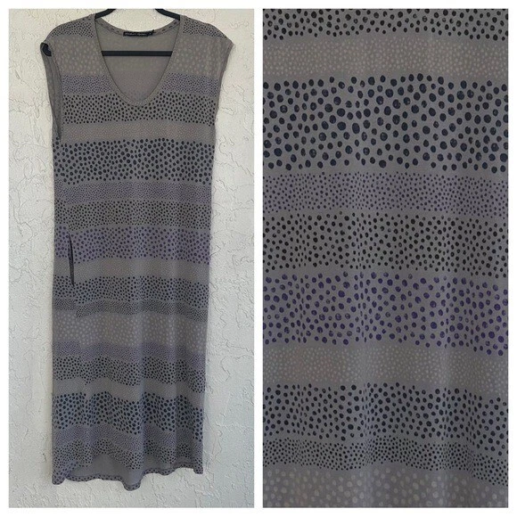 Dress Length: Midi Brand: Gudrun Sjoden Department: Women Neckline: Scoop Neck Size: S Material: Lyocell Style: T-Shirt Dress Season: Fall, Spring, Summer Sleeve Length: Short Sleeve Features: Pockets, Stretch Size Type: Regular Color: Gray Closure: Pullover