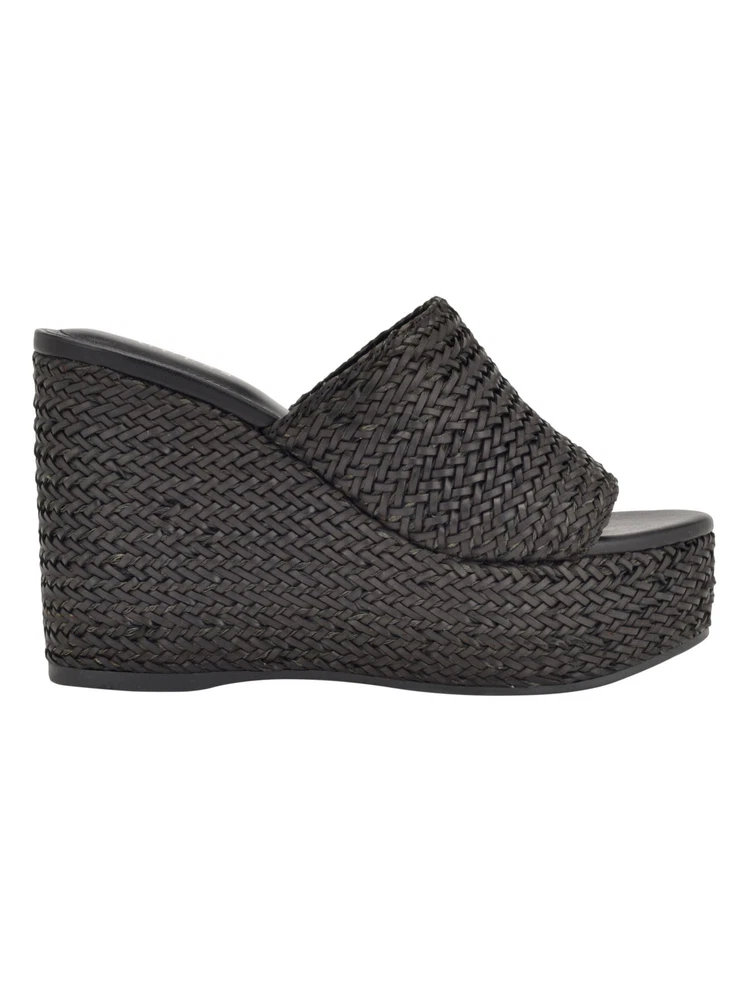GUESS Womens Black 1-1/2" Platform Yenisa Open Wedge Slip On Heeled Sandal 10 M
