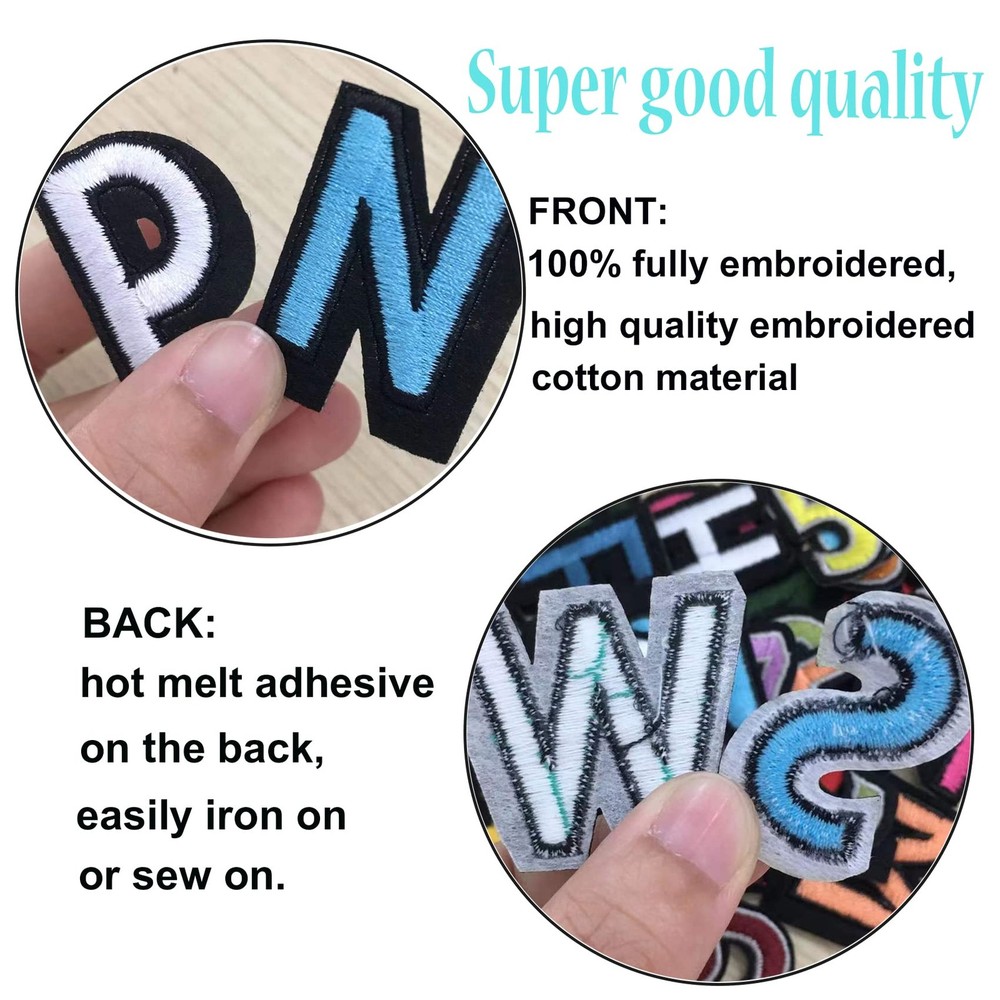 Package Included: including 52pcs embroidered patches alphabet A-Z, 20pcs numbers 0-9 applique patch, a total of 72 pieces iron on patches Product Size: each letter or number patch measures about 1.7 inch (height) and 1.0 inch (width), Please allow sll differences due to manual measurement. Material: high quality embroidered cotton material, with hot melt adhesive on the back, can be sew on or iron on Widely Use: iron on letters patches can be used for repairing clothes, or decorate jackets, jeans, hats, socks, shoes, schoolbags, children's clothing, also can be applied to other crafts How to Use: you can put cotton fabric on the letter patch to secure the cloth before ironing, than set iron to "COTTON", 100-150 degrees, for 5-10 seconds. You’d better sew them if you want keep them on and never fall off. Package Included: including 52pcs embroidered patches alphabet A-Z, 20pcs numbers 0-9 applique patch, a total of 72 pieces iron on patches Product Size: each letter or number patch measures about 1.7 inch (height) and 1.0 inch (width), Please allow small differences due to manual measurement. Material: high quality embroidered cotton material, with hot melt adhesive on the back, can be sew on or iron on Widely Use: iron on letters patches can be used for repairing clothes, or decorate jackets, jeans, hats, socks, shoes, schoolbags, children's clothing, also can be applied to other crafts How to Use: you can put cotton fabric on the letter patch to secure the cloth before ironing, than set iron to "COTTON", 100-150 degrees, for 5-10 seconds. You’d better sew them if you want keep them on and never fall off.