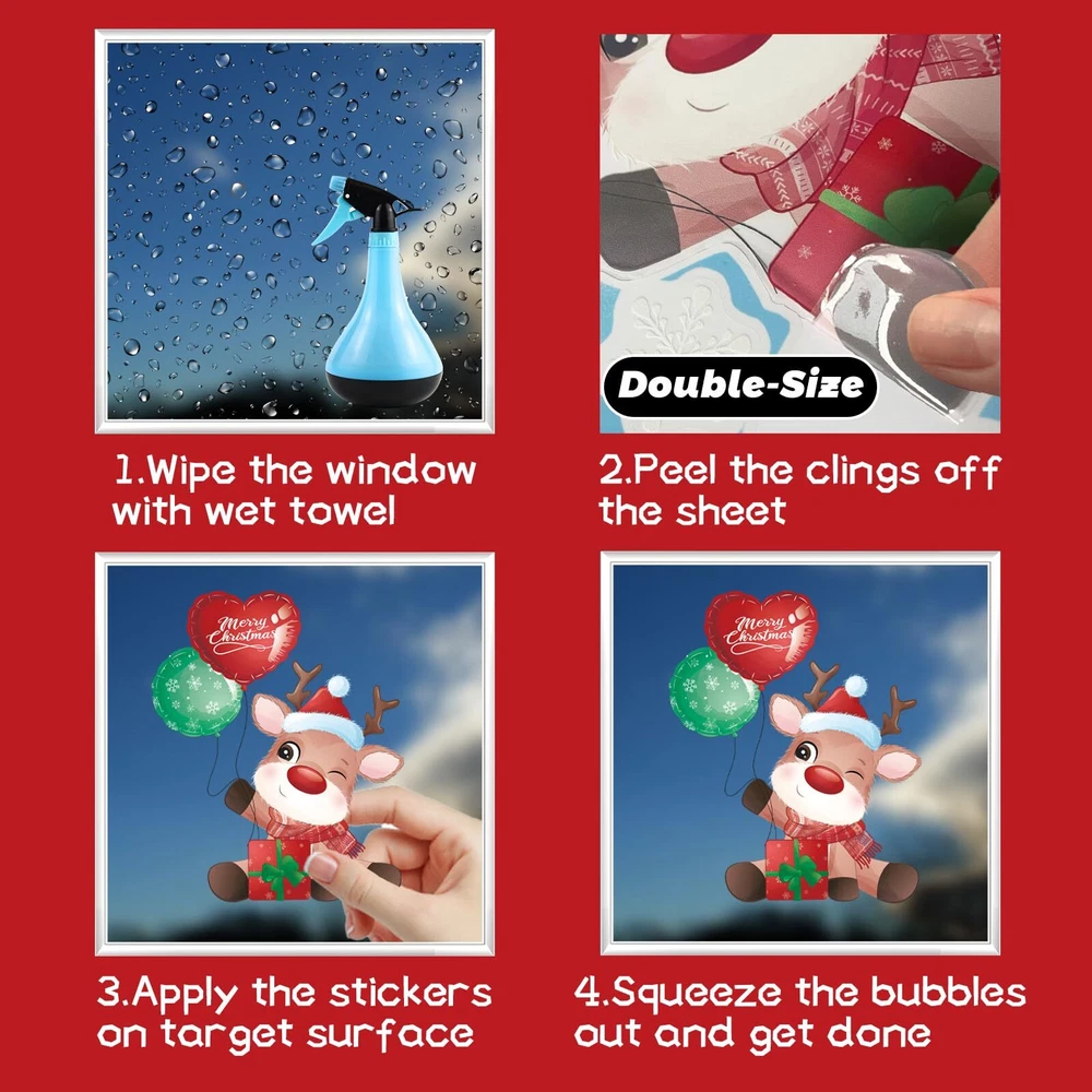 Package includes: 9 sheets Christmas window decals stikcers Size: Each Christmas window cling sheet measures 7.9 in× 11.8 in. Easy to Apply and Remove: Christmas window stickers have no adhesive, you just need to clean the surface and stick the window stickers on with water. Of course, you can also remove them easily without leaving any marks. Double-Side Christmas Window Clings: these window clings have double-side patterns, the means that you can see him when you stick them on the window, no matter indoor or outdoor. Widely Used: Christmas window decorations are suitable for any smooth surface, such as glass doors and windows, store windows, refrigerators, mirrors and smooth walls. The package includes a variety of different styles of patterns, which can add festive atmosphere and make your Christmas party unforgettable. Package includes: 9 sheets Christmas window decals stickers, 244pcs decals in total. Size: Each Christmas window cling sheet measures 7.9 in× 11.8 in. Easy to Apply and Remove: Christmas window stickers have no adhesive, you just need to clean the surface and stick the window stickers on with water. Of course, you can also remove them easily without leaving any marks. Double-Side Christmas Window Clings: these window clings have double-side patterns, the means that you can see him when you stick them on the window, no matter indoor or outdoor. Widely Used: Christmas window decorations are suitable for any smooth surface, such as glass doors and windows, store windows, refrigerators, mirrors and smooth walls. The package includes a variety of different styles of patterns, which can add festive atmosphere and make your Christmas party unforgettable.