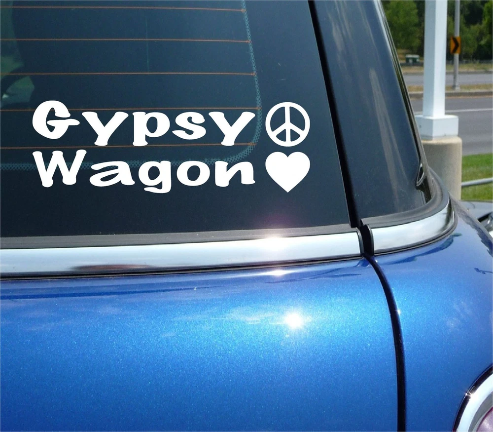 GYPSY WAGON PEACE LOVE VINYL DECAL STICKER HEART FUNNY HIPPY HIPPI CAR TRUCK