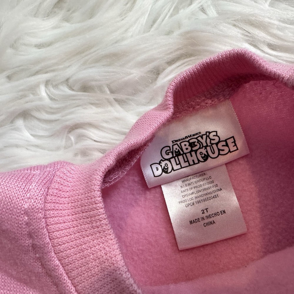 Details: • Brand: DreamWorks • Character: Gabby (Gabby’s Dollhouse) • Size: 2T (Toddler Girls) • Color: Pink • Set Includes: Sweatshirt & Jogger Pants • Sleeve Length: Long Sleeve • Neckline: Crew Neck • Fit: Regular • Material: Cotton blend • Condition: Pre-owned, excellent used condition with light signs of wear • Features: • Soft & comfortable fabric • Elastic waistband joggers • Ribbed cuffs • Cute character graphics • Easy care Smoke & Pet Free Home Ships Fast!