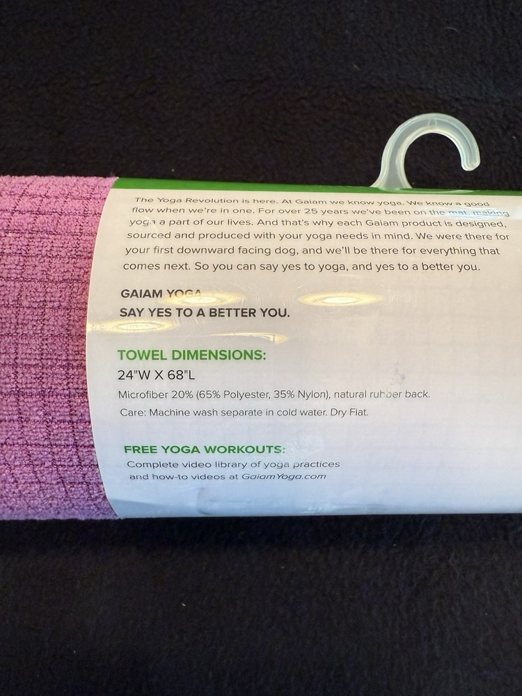 The Gaiam NWT Yoga Microfiber Towel in Pink is a full-size, non-slip yoga mat made from soft and durable microfiber material. With dimensions of 24”W x 68”L, this rectangle-shaped towel is perfect for both men and women practicing yoga. The pink color adds a pop of fun to your workout gear, while the grippy feature ensures stability during your yoga routines. Whether you're a beginner or a seasoned yogi, this Gaiam towel is a must-have for your yoga practice.