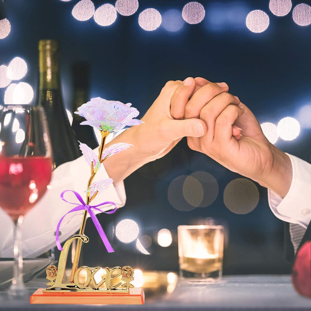 Galaxy Crystal Rose Flower with Love Stand Perfect Unique Gift