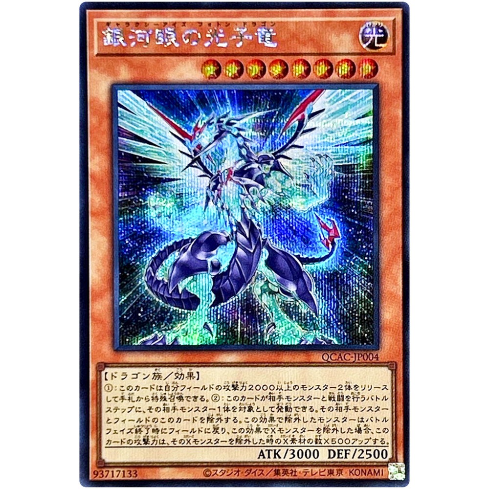 Item Description QCAC-JP004 Galaxy-Eyes Photon Dragon Front Back Card Name : Galaxy-Eyes Photon Dragon Character : Galaxy-Eyes Photon Dragon Rarity : Secret Rare Card Number : QCAC-JP004 Set : Quarter Century Art Collection Type : Effect Monster Language : Japanese Card Condition : Near Mint Purchased cards will be clipped with cardboard, waterproofed, and shipped without any scratches or folds. Cards over $20 will be packed even tighter with a loader for each card. Shipping Policy Free shipping worldwide. Free shipping does not include tracking. There is an additional cost of US $4 for tracking. If you purchase cards totaling US $30 or more, you will receive a free tracking number. All of the products will be shipped from Japan. Economy Shipping Air mail ( no tracking ) Free Shipping Delivery time : About 2-4 weeks Standard Shipping Air mail ( with tracking ) US $4 Delivery time : About 2-4 weeks Expedited Shipping FedEx or EMS or DHL ( with tracking ) US $24 Delivery time : About 1-2 weeks Payment Policy We accept all major credit cards and Paypal payments. Return Policy We hope you will love your purchase, houever if you need to return it, we have a 30 day return policy. International Buyers Import duties, taxes, and charges are not included in the item price or shipping cost. These charges are the buyerʼs responsibility. Please check with your countryʼs customs office to determine what these additional costs will be prior to bidding or buying. If the cancellation is due to the buyer, wewill charge a fee. If there is a remote charge for your address, we will charge you for additional shipping. We are honored to receive the eBay Japan Awards 2022! I am thrilled to share that my store has won the eBay Japan Awards 2022 ! This amazing accomplishment wouldnʼt have been possible without our wonderful customers. A heartfelt thank you for your ongoing support. We will continue to improve our services, offering a diverse selection of items and top-notch customer care Thank you for helping us achieve this prestigous recognition, and we look forward to serving you in the future! Copyright ©️ 2024 Animart Japan