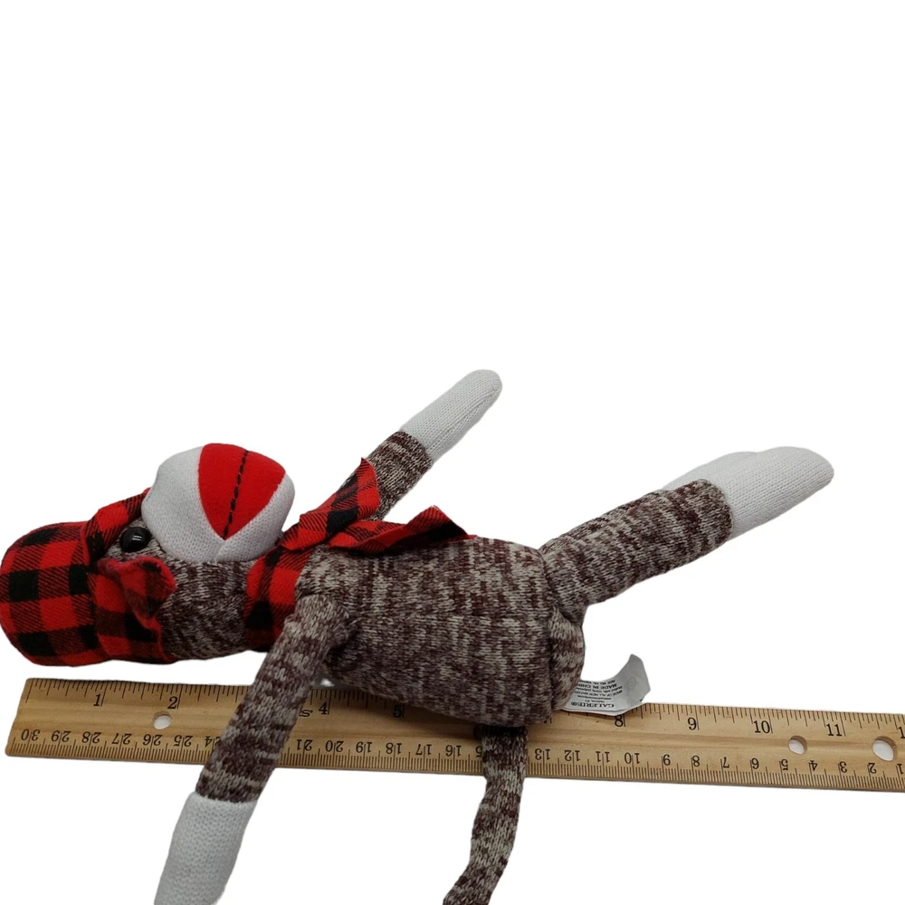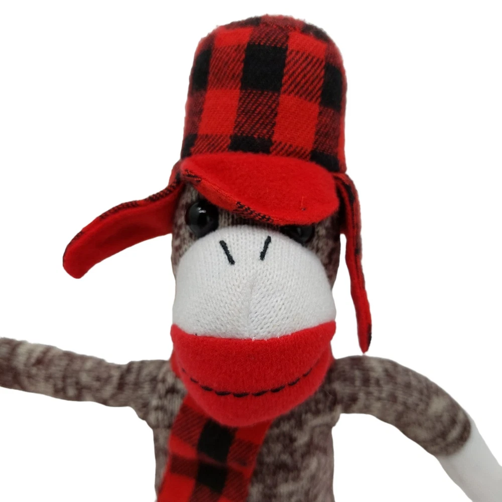 Galerie Jack Monkey Plush Holiday Stuffed Animal Toy Christmas Plaid Hat Scarf
