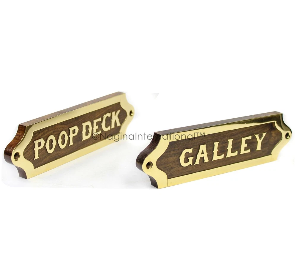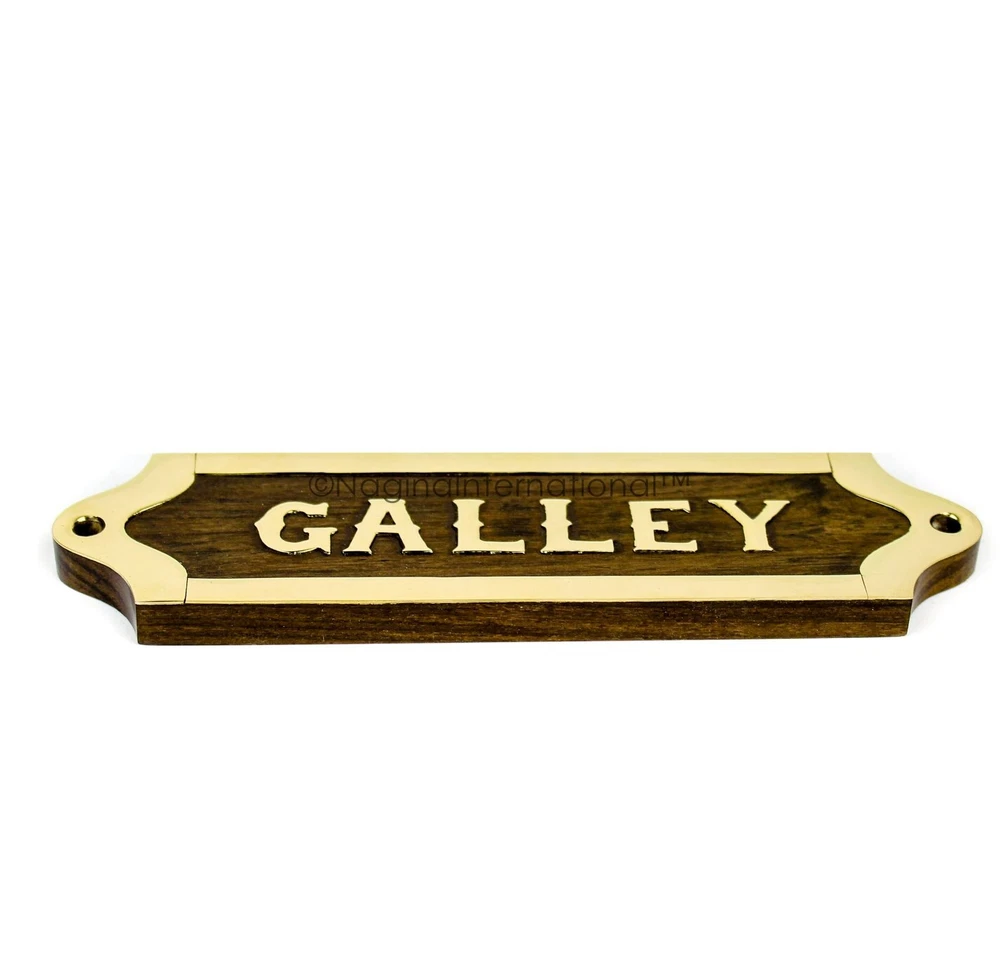 Hand Crafted Nautical Wooden Name Plates Or You Could Go By Wooden Plaques. These Are High Quality Wood Crafted Nautical Plaques With Brass Inlayed Letters. The Premium Solid Wood Has Been Buffed To Polish And Dons A Premium Nautical Brass And Wood Finish.. The Letter Inlaid Are Made Out Of Solid Shiny Brass Which Has Been Coated With A Sheer Finish Of Lacquer Coating To Finish Off And Seal The Oxidization Of Brass With Oxygen And Prevent And Tarnishing. These Are Crafted With Wonderful Craftsmanship Which Is Really Being Portrayed Through The Pictures Itself.. Looking At These Beautiful Wooden Plaques Reminds You Of Maritime Decor. The Titles And Designation Each Are Related To Ship , Thus Makes A Premier Nautical Decor For Your Amazing Walls And Homes.. These Beautiful Name Plates Do With Two Screws For Each Plate And Wall Plugs To Help You Easily Fix It Onto Anything Be It A Door Or A Wall. Keep Exploring For More Lovely Home Decor Products. Dimensions : Not Available | Model Selected : Galley SKU Code - B01MXRBX60 | Material : Solid Grade Rosewood + Solid Brass | Hardwood Extra Hand-Sanded To Premium Finish | Buff Polished To Shiny Surface | Solid Real Brass With Shiny Surface. Wall Decor For Pirate's & Ship Loving Oriented People | Birthday Gifts For Navy Personnel | Wooden Crafted Title Boards It Can Easily Enhance Any Bedroom, Living Room, Dorm, Office, Apartment And So On. The Unique Design Adds Vintage Nauticality Style To Any Space And Perfectly Matches With Many Interior Decor Styles | Exquisite Workmanship With Retro Classic Design Vintage Appeal. We Ship Worldwide From India | Ideal Gift Option For Your Upcoming Birthday, Christmas Or Any Other Festival / Occasion.