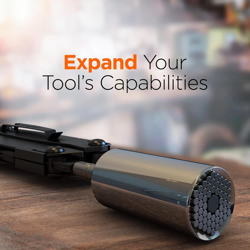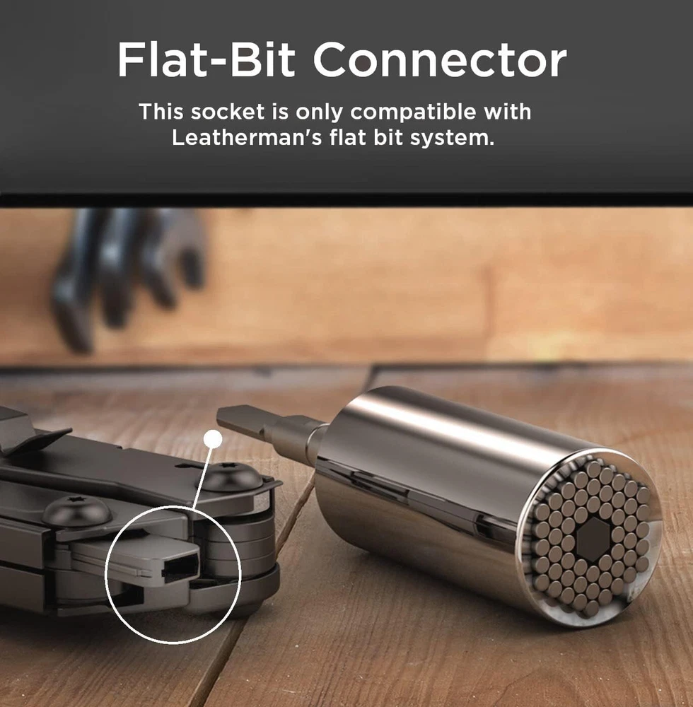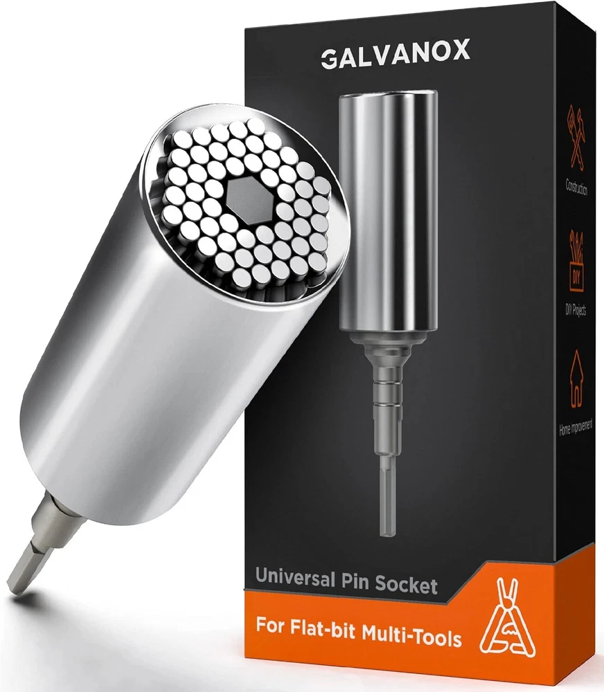 Galvanox Universal Socket Adapter Compatible with pocket size, Silver Product Details Color: Silver Material: Stainless Steel Brand: GALVANOX Item dimensions L x W x H: 3.96 x 1.02 x 1.02 inches Included Components: Socket Adapter Number of Pieces: 1 Manufacturer: Galvanox Part Number: LBUT202 Item Weight: 7.8 ounces Product Dimensions: 3.96 x 1.02 x 1.02 inches Item model number: LBUT202 Size: pocket size Style: Screw Item Package Quantity: 1 Batteries Included?: No Batteries Required?: No Color: Silver Material: Stainless Steel Brand: GALVANOX Item dimensions L x W x H: 3.96 x 1.02 x 1.02 inches Included Components: Socket Adapter A must have accessory add-on for Leatherman users! The Galvanox Universal Socket adapter compatible with all "Flat-Bit" multi-tools to help you get the job done right. Less to Carry: This tool allows you to travel with one adapter instead of multiple socket attachments, making it a space-saving and versatile addition to your tool kit. Automatically adjusts: The adapter instantly adjusts to fit hex or square nuts, hooks, crew eyes, tension screws, bolt heads, and even stripped or damaged nuts ranging from 1/4" to 3/4" in size. Durable and long-lasting: Made of high-quality stainless steel, this tool is built to withstand heavy use and will serve you for years to come. Whether you're a mechanic, plumber, carpenter, or simply enjoy projects, our universal socket adapter is the perfect gift and a handy tool for everyone. Galvanox Universal Socket Adapter Compatible with LeathermanThis compact and efficient tool automatically adjusts to fit a variety of shapes and sizes, ranging from 1/4" to 3/4". Say goodbye to the hassle of searching for the right attachment - our universal socket adapter saves you time and space, making it an essential addition to your tool universal socket adapter uses individual steel rods to allow the socket to instantly conform to any shape. It's precision engineered for a perfect fit, ensuring that your tool remains firmly in place while you work. Made of high-quality stainless steel, this tool is built to withstand heavy use and will serve you for years to come. Whether you're a mechanic, plumber, carpenter, or DIY enthusiast, our universal socket adapter is the perfect gadget to simplify your life and help you get the job done.Product Specifications:Made of high quality stainless steelDimensions:100.48mm x 25.89mm x 25.89mmWeight: 172 gramsAdjusts to fit nuts and bolts ranging from 1/4" to 3/4" (7-19mm)Compatible with Leatherman Surge, Wave Plus, Signal Camping, Skeletool, and Charge Plus