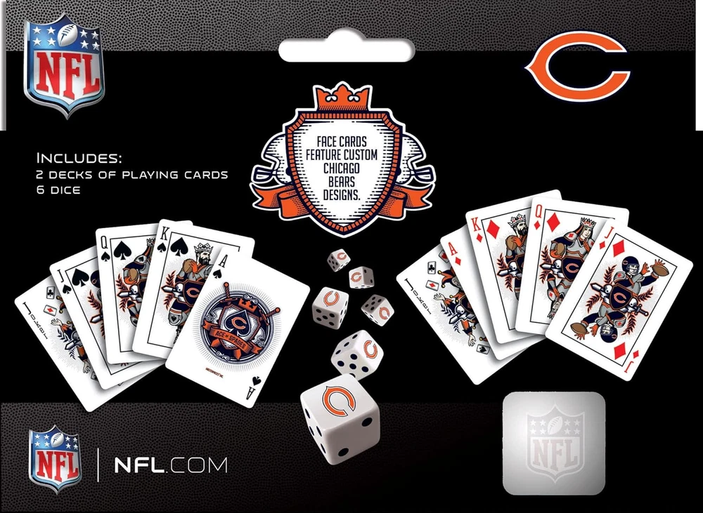 Store New Arrivals Add to Favorite View Feedback Contact Game Day - NFL Chicago Bears 2-Pack Playing Cards & Dice Pack - Officially Licensed Set for Adults and Family Description Age Range Description Adult Number of Items 1 Package Quantity 1 Color Team Colors Container Type Box Global Trade Identification Number 00705988013614 Material Fabric Various Theme Sports Package Type Flat Item Display Dimensions 6.75 x 6.75 x 4.92 inches Unit Count 1.0 Count Special Features Custom Team Designs, Includes Gaming Dice Set Included Components NFL Chicago Bears 2 Pack Cards and Dice Set Item Type Name Cards and Dice Set Style Name Chicago Bears Size 2-Pack 2 Decks of 3.5" x 2.5" Poker Size Playing Cards 5 Standard Size Dice Officially Licensed NFL Product 52 playing cards and 2 Jokers All Face Cards, Jokers, and Ace of Spades cards have custom Chicago Bears team designs This 2-pack card and dice set is perfect for all NFL fans! Each standard card deck contains 52 cards and 2 jokers with custom team designs. Set includes 5 standard size dice featuring Chicago Bears logo and colors on each die. Support your favorite NFL Team with officially licensed and approved product. Perfect for all fans! For 25 years, MasterPieces has enjoyed making quality jigsaw puzzles, games, toys & Works of Ahhh craft kits. Innovation and premium quality is the MasterPieces hallmark. We pledge to always provide earth friendly products. Our puzzles are made from recycled paper and soy based inks. Green is not just a color, it’s a commitment. ABOUT US We offer the best prices around on high quality products. Our E-store includes media such as books, movies, music and games while offering electronics, toys, sporting apparel, clothing, tools, general home, garden items and more. SHIPPING We are always working hard to ensure your package arrives as soon as possible. Please understand that some factors like weather, high postal traffic, and the performance of shipping companies are outside of our control. We offer free shipping to the lower 48 states and ship within 2 business days of payment, usually sooner. We do not accept P.O. Boxes. Please provide a physical address. For shipping outside of the continental USA, we only use eBay's Global Shipping Program.The item is shipped to KY and then sent to the rest of the world. International customers are responsible for all duties and taxes. Continue to check out in order to calculate costs for shipping the item to your country. Messages regarding eBay's Global Shipping Program MUST be directed at eBay EXCLUSIVELY. RETURNS We offer a 30-Day Return Policy on items which you are not completely satisfied with. You have the option for a full-refund or an exchange of the item. No returns are available on items shipped outside of the USA. PAYMENT We accept PayPal. CONTACT US This page content is yet to come Please ad us to your favorite seller and visit again later Thank You CUSTOMER SATISFACTION We try our very best to make sure every customer is completely satisfied. If there's a problem, message us! We're happy to help. WE ACCEPT Copyright © 2021 AutoDS. | All Rights Reserved