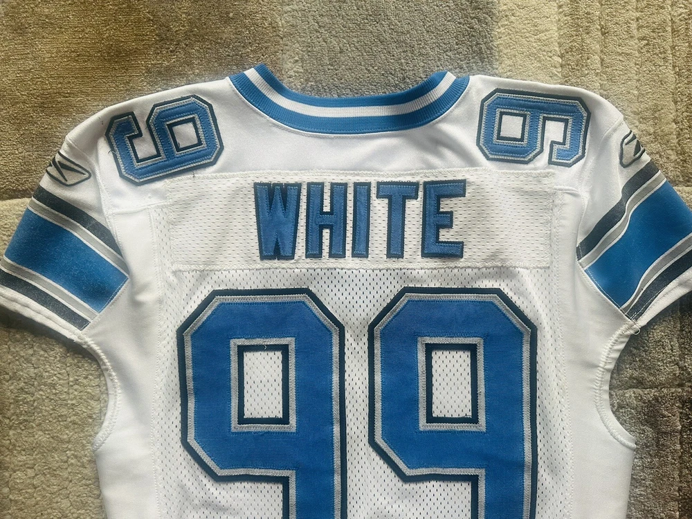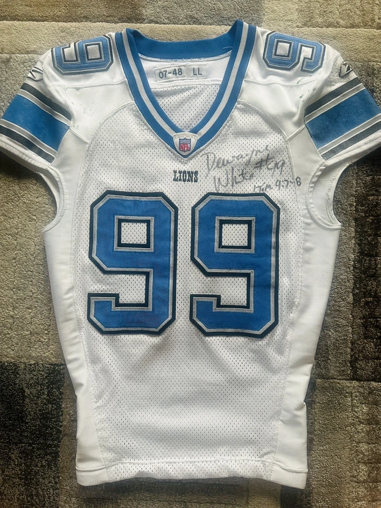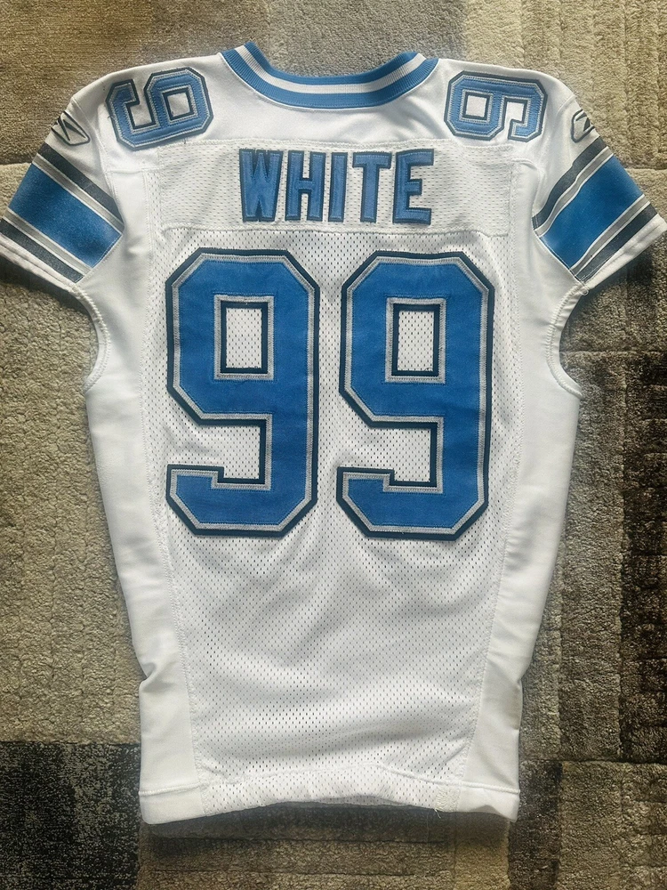 Game Worn Detroit Lions Signed Reebok RBK Dewayne White NFL Jersey Used 48