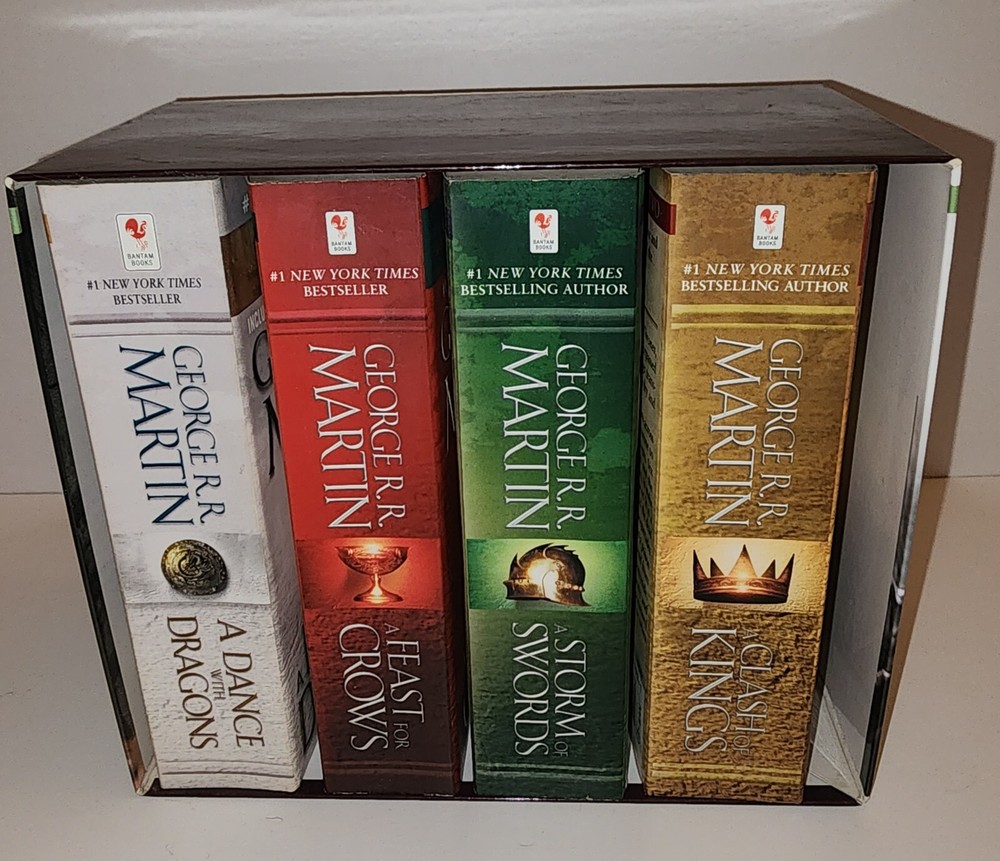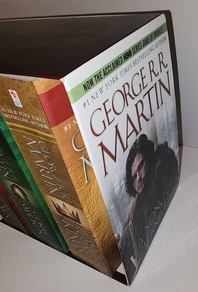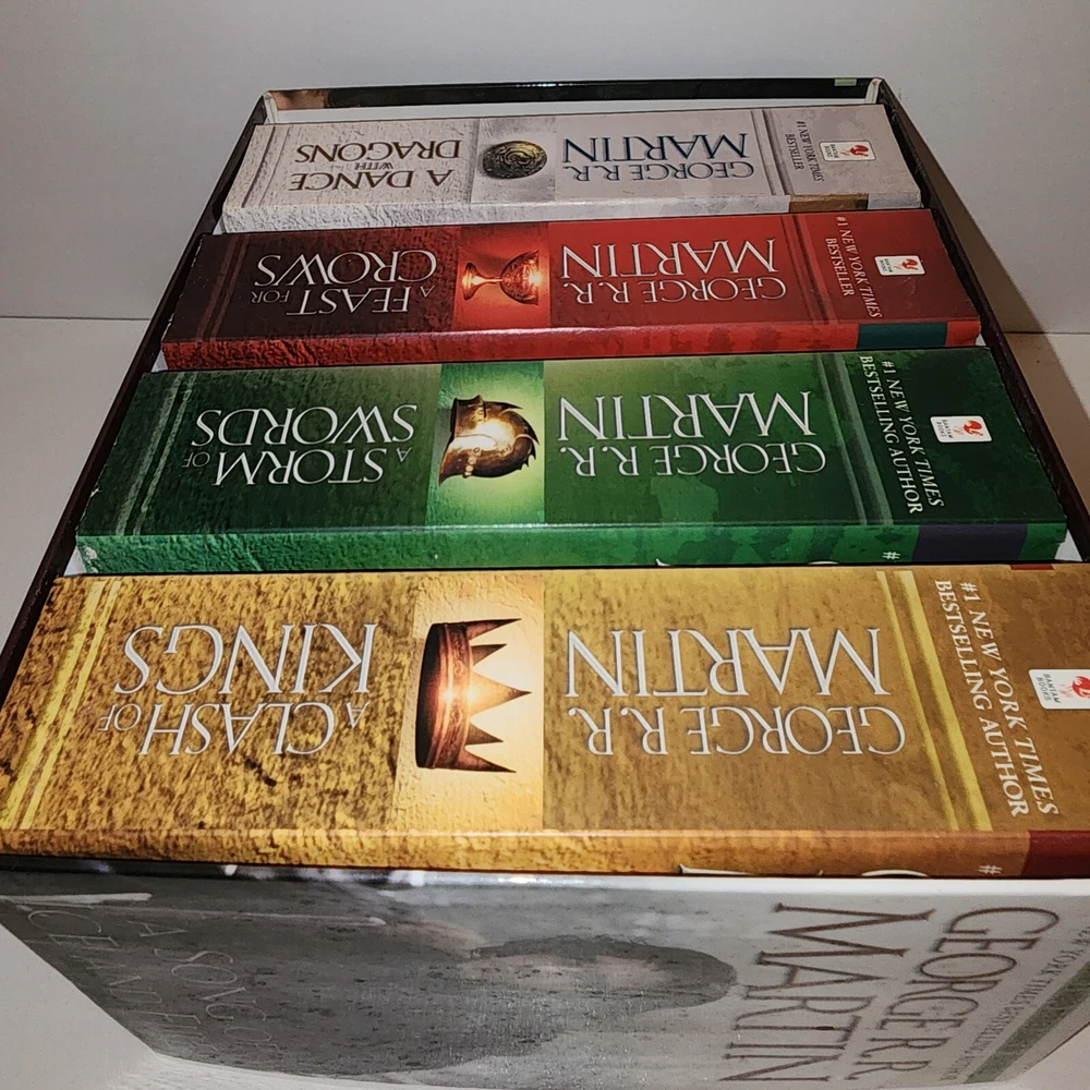 Absolutely love this box set! The four Game of Thrones books are in perfect condition—like new—and the epic fantasy world George R.R. Martin created is even more immersive in print. From the political intrigue in A Clash of Kings to the jaw-dropping twists in A Storm of Swords, every page is packed with action and drama. If you're a fan of the show or just love high fantasy, this collection is a must-have. The sturdy box keeps them safe, and the storytelling is unmatched. Couldn’t be happier with this purchase!