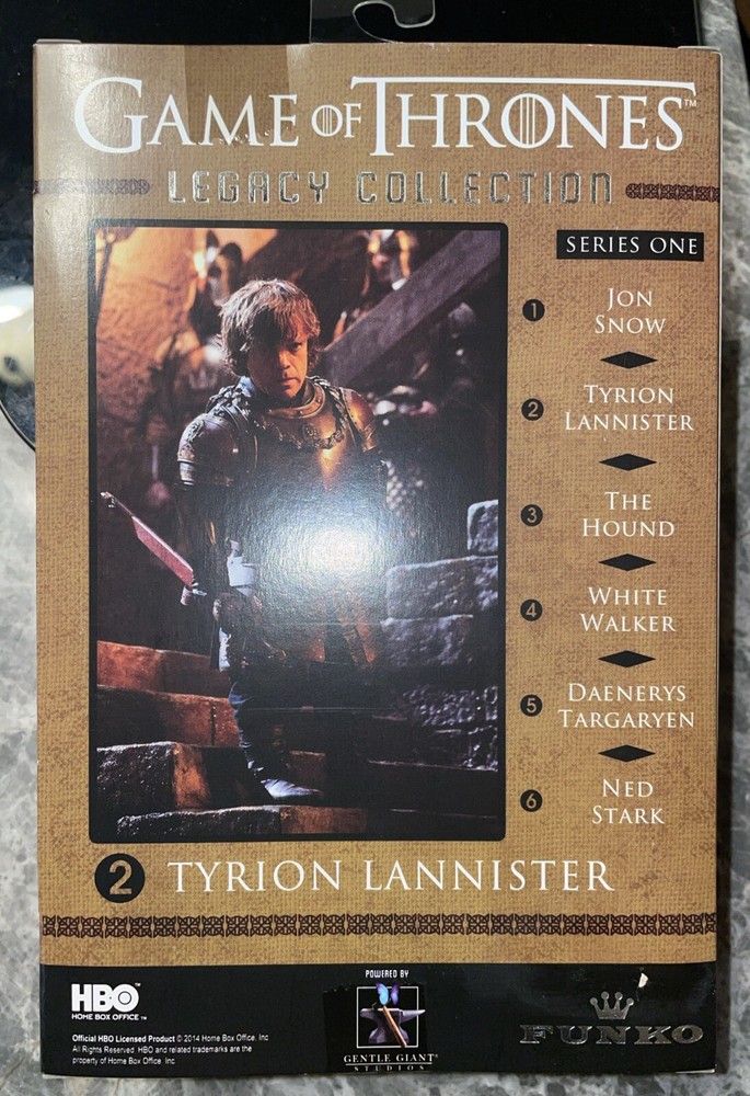 This Game of Thrones Tyrion Lannister Action Figure is a must-have for any fan of the show. Standing at 6 inches tall and with a width of 3 inches, this licensed reproduction figure comes with clothes and an axe, perfect for all occasions. The figure is made of plastic and weighs 8 ounces, with a scale of 1:10. The item is packaged in its original unopened packaging and is suitable for ages 17 and up. The figure is part of the Legacy Collection from Funko and features the popular character from the Game of Thrones series. This non-sport item is perfect for collectors and fans alike, and is a great addition to any collection.