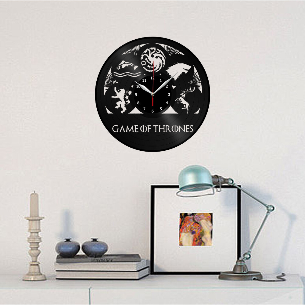 Game of Thrones Vinyl Record Wall Clock Condition: New Size: 12" (30cm) Material: vinyl record, built-in hanger, new movement quartz clock mechanism. Our clock mechanisms work quiet. * Requires 1 AA battery (not included) We pack our wall clocks in a separate protected box. This can be a unique gift for a birthday, anniversary, wedding, Mother's Day, Father's day and so forth. It is a beautiful decoration for hall, living room, office, playroom, kitchen, bedroom, children's room, nursery. Custom order Would you like to create something absolutely original? Nothing could be easier! Feel free to order your own unique design! Shipping We will need around 2-3 working days to make the vinyl clock and send it to you. All buyers will be provided with tracking numbers for their purchases. Shipping only by AIR Mail services. Contact Us Feel free to contact with us if you have any questions. We seek to answer for all messages as soon as it possible but, please note for the time difference about 7-10 hours, that's why some answers may be received only next day.