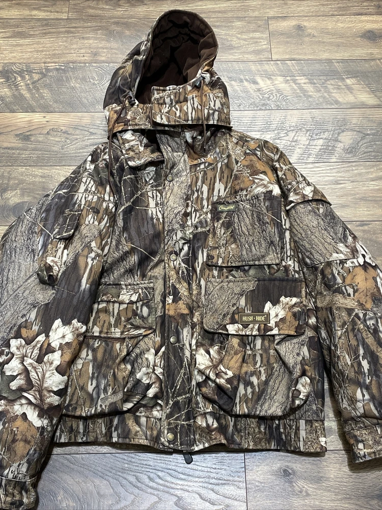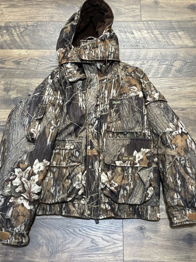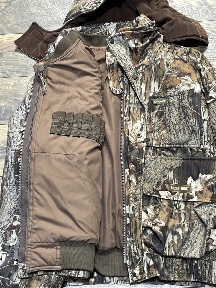Gamehide Men's Camo Puffer Coat and Liner 2-1 Size L Hunting Jacket Outdoors Item listed in Good used Condition please see attached photos for more details Measurements are as follows 25” chest 29” length 29” sleeve length from shoulder Will ship UPS within 24 hours safely and efficiently