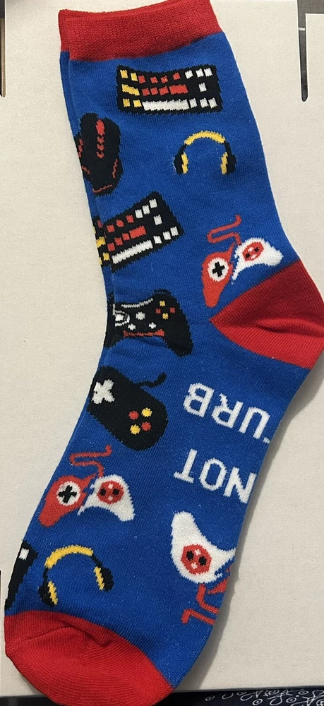 Personalized Gift Box Set Perfect gift for those who love gaming. All items are packed in a 9x6x2 (inch) White Box with color coordinated gift tissue paper. Ready for immediate gift giving! Details of what is included below: RFID Trifold Velcro Wallet (4.7x3.2)(inch) Mini Controller Charm Keychain (about an inch) 2 Pairs of Crew Socks (Size 7-13) 2 Silicone Bracelets A Pair of Silicone Thumb Grips for Controller Gel Turntable Pen 2 Small Notepads Lightweight Drawstring Gym Bag (16.9x13.7)(inch) 6 Waterproof Stickers