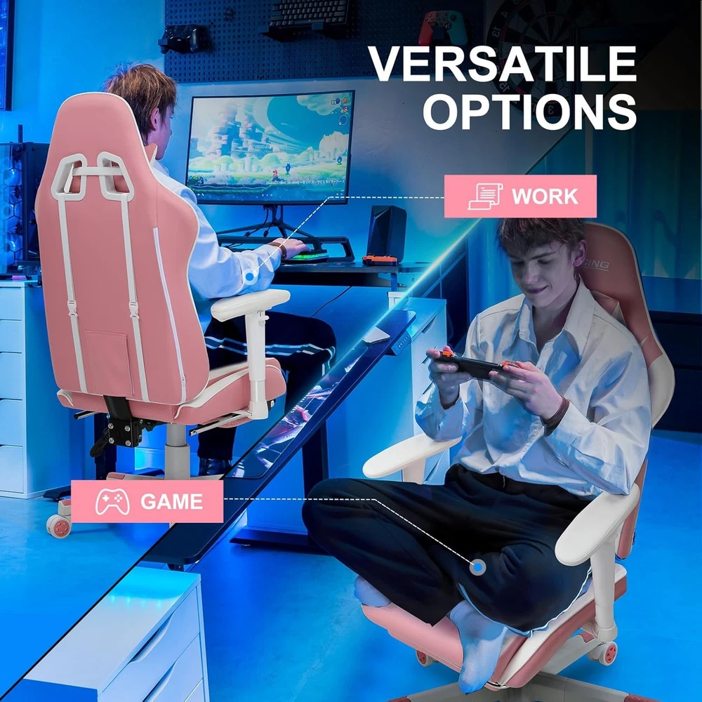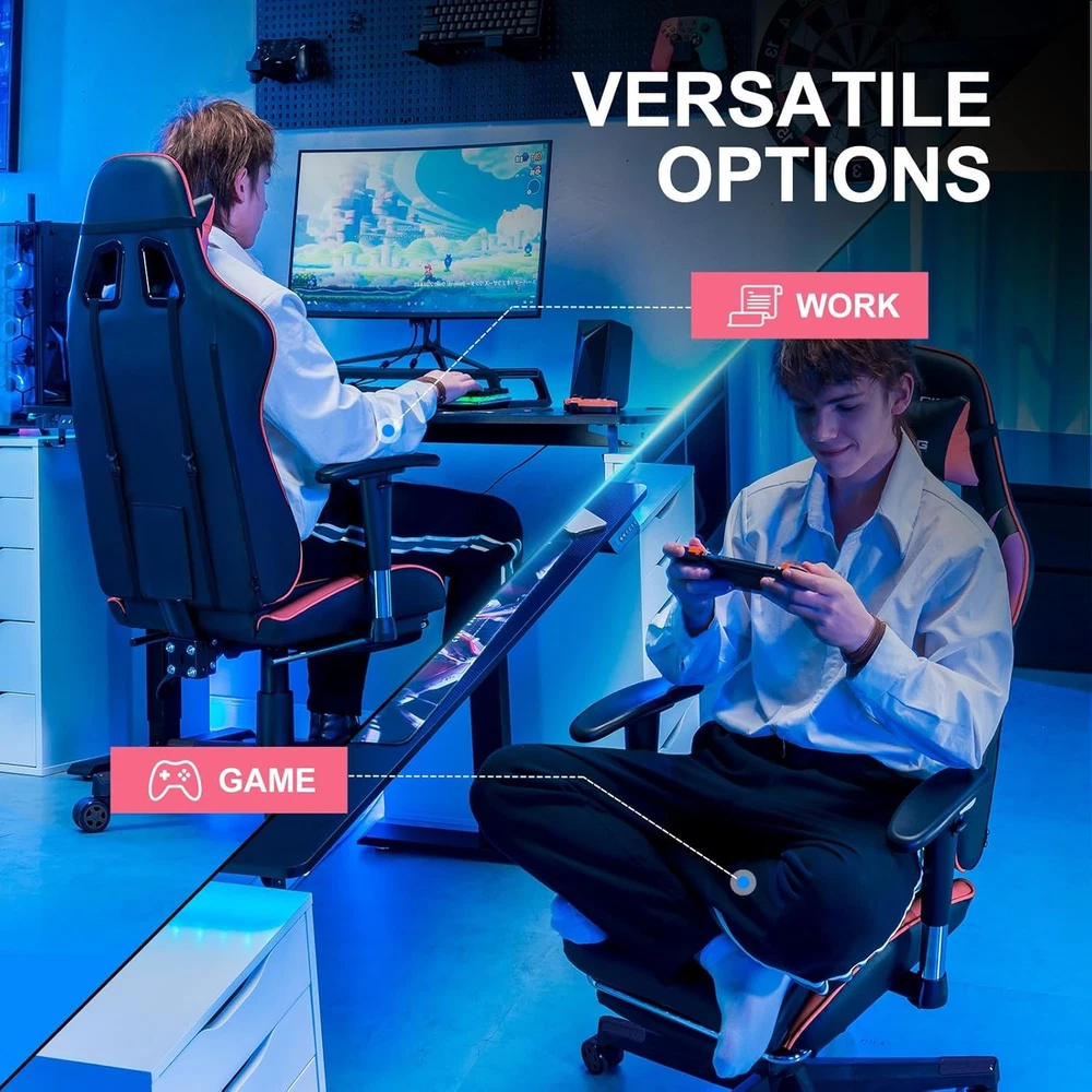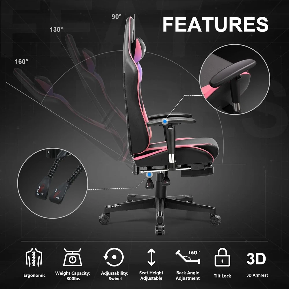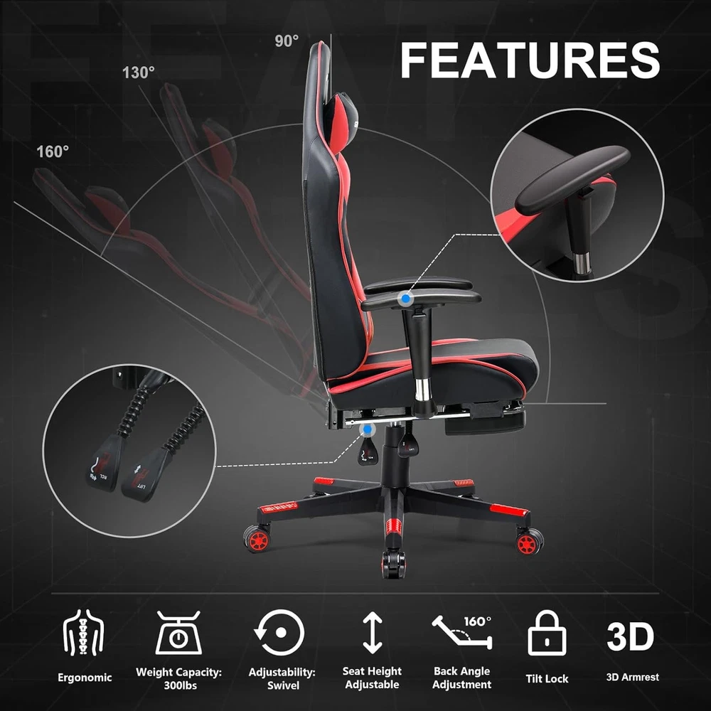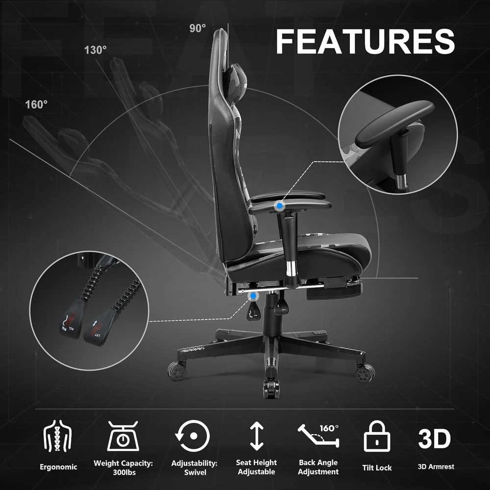 Gaming Chair with Footrest, Ergonomic Computer Game Desk Chair, Reclining Gamer